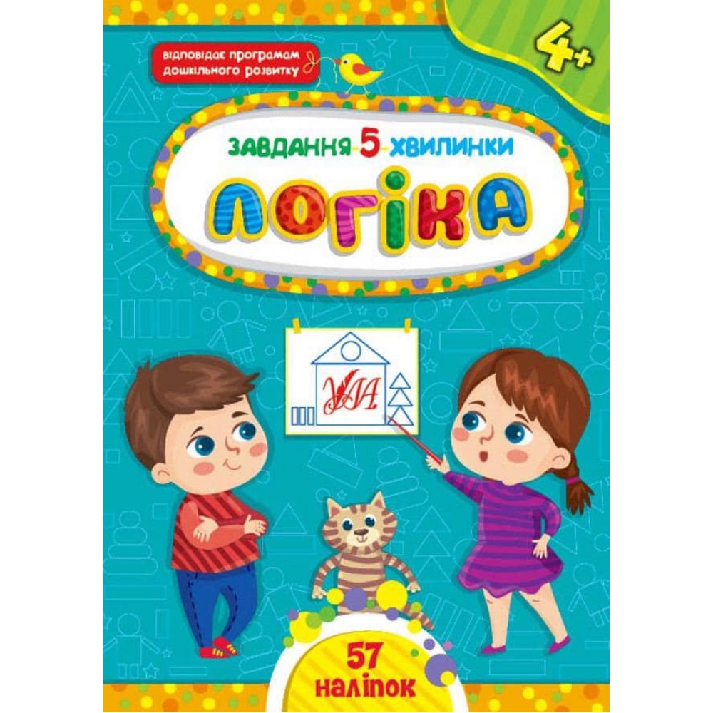 Книжка «Логіка. 4+» допоможе розвинути логічне мислення дитини. На кожній сторінці подано одне завдання, спрямоване на повторення чи вивчення лічби, кольорів, фігур; перевірку розуміння, з якого матеріалу виготовлено предмети, який одяг варто вдягнути залежно від пори року чи проявів погоди, розвиток вміння встановлювати логічні послідовності й доповнювати їх.Тематичні наліпки доповнять й урізноманітнять роботу. Видання призначене для спільної роботи дорослих з дітьми віком від чотирьох років.