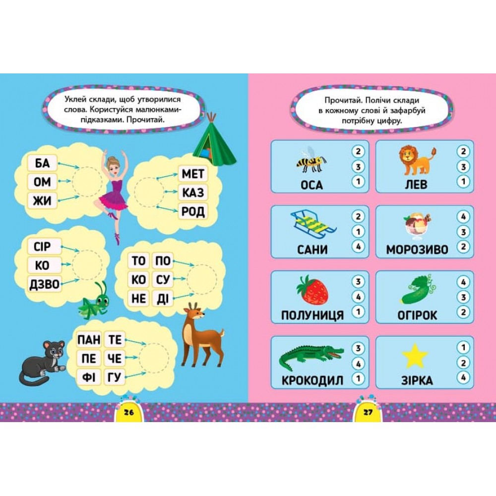 Книжка «Читання. 5+» допоможе дитині відпрацювати навички читання слів і перейти на наступний рівень — до читання словосполучень, речень і тексту. Тематичні ігрові завдання спонукатимуть уклеювати букви й склади в слова, визначати кількість складів, утворювати нові слова із поданих, розгадувати ребуси та кросворди, доповнювати прочитаний матеріал наліпками чи розповіддю. Видання призначене для спільної роботи дорослих з дітьми віком від шести років.