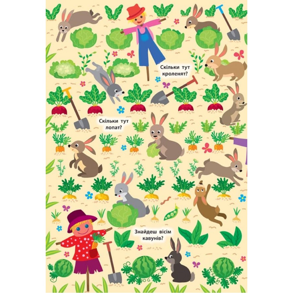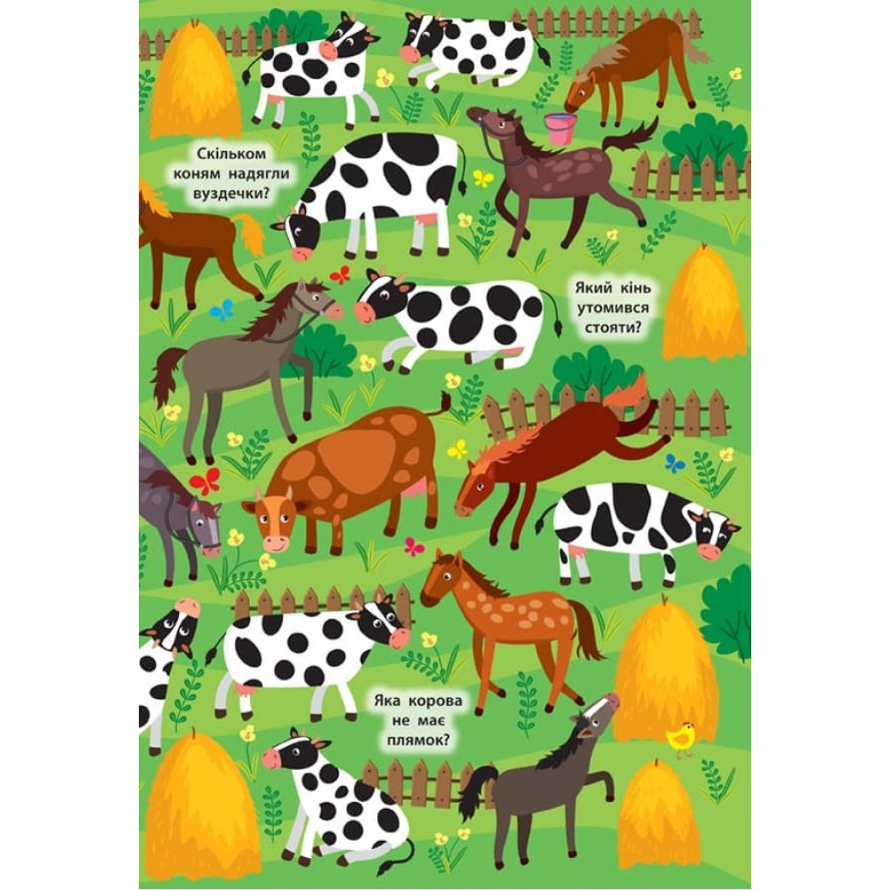 Це видання познайомить дитину з кумедними мешканцями ферми. Виконуючи завдання, маленький розумник розвине уяву, потренує пам’ять та увагу, навчиться міркувати, творчо підходити до вирішення різних завдань і зможе відчути себе справжнім слідопитом! Кожен розворот книжки містить велику барвисту ілюстрацію з безліччю різноманітних кумедних персонажів і запитання, що підкажуть, які несподіванки потрібно шукати на картинці.