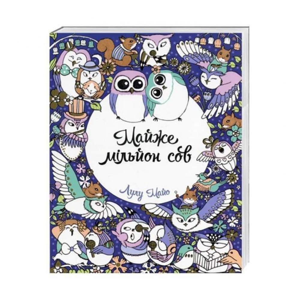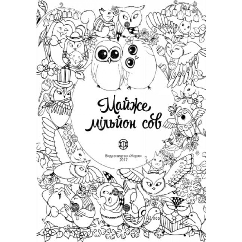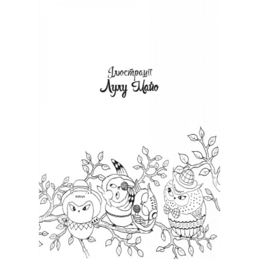 Крихітні сови. Співаючі сови. Сови їдять, грають на інструментах і щасливо сидять на гілках: мільйон чарівних сов, щоб розмальовувати!
