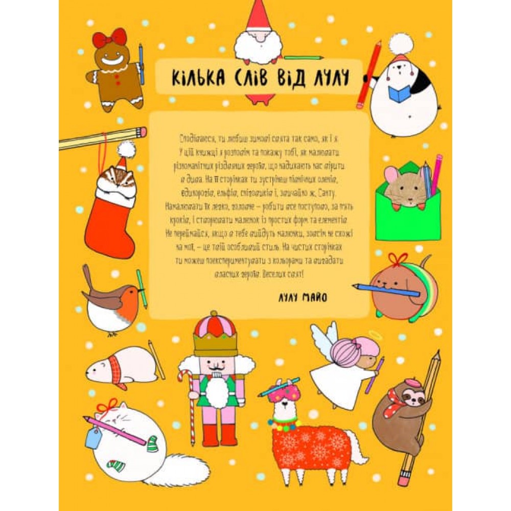 Посібник по малюванню оленів та інших різдвяних героїв від улюбленого ілюстратора Лулу Майо. Кумедні та симпатичні малюнки для творчих випробувань.