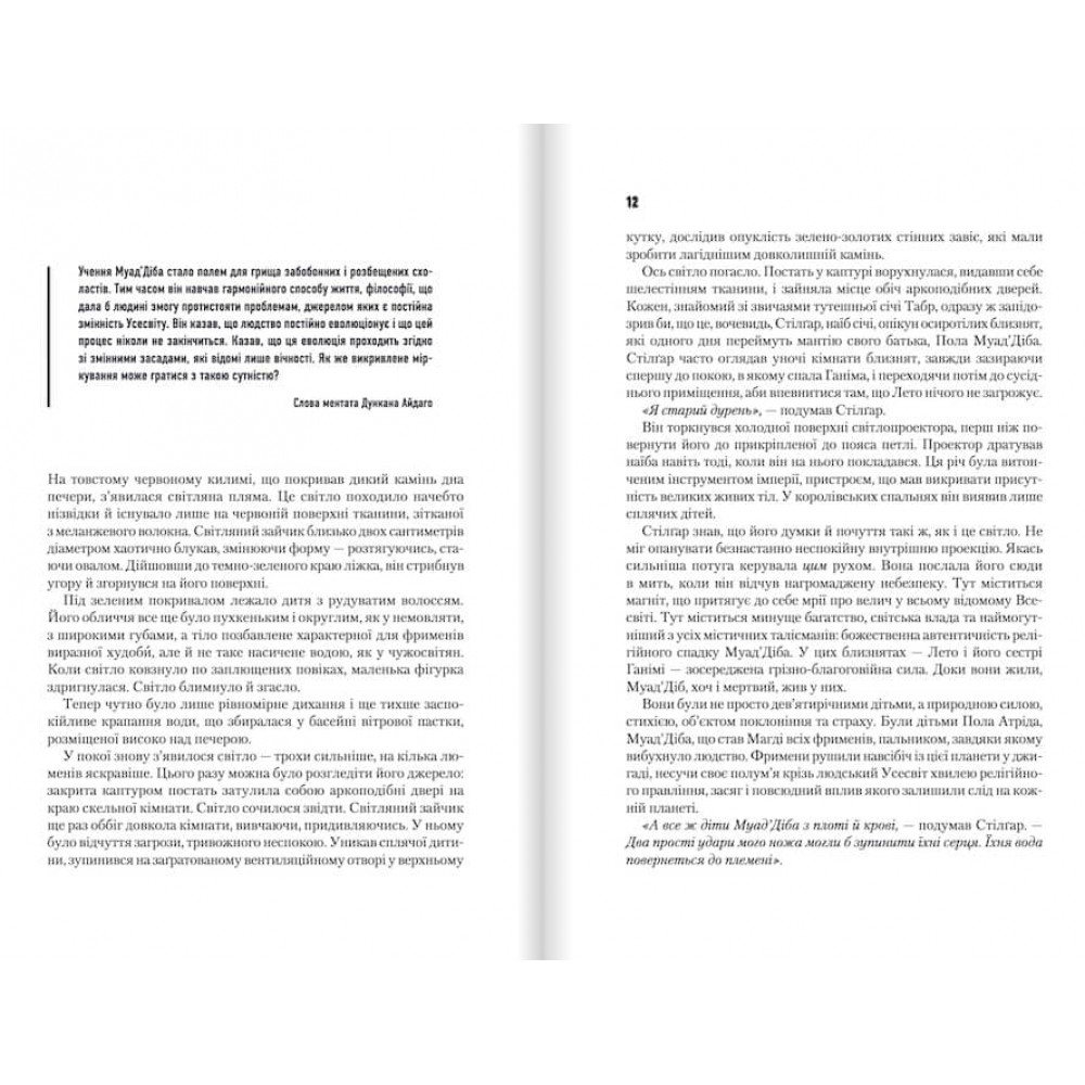 Настав час, і старий Пол Атрід, таємничий Муад’Діб, володар Арракіса, покинув Галактику назавжди. Роки його правління сплинули, як і роки життя. Почалася епоха дітей Дюни — близнят Лето та Ганіми. У них зосереджена грізна сила — завдяки пам’яті своїх предків вони не по-дитячому мудрі й мають дар передбачення.