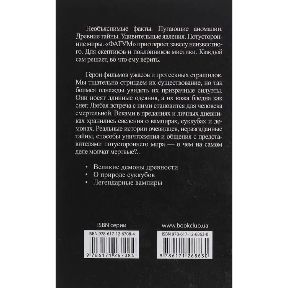 Герої мультфільмів, жахів і гротескних страшилок. Ми ретельно заперечуємо їхнє існування, але так боїмося одного разу побачити їхні примарні силуети. Вони носять довгі шати, а їхня шкіра бліда як сніг. Будь-яка зустріч з ними стає для людини смертельною. Століттями в переказах і особистих щоденниках зберігалися відомості про вампірів, суккубів і демонів. Реальні історії очевидців, нерозгадані таємниці, способи знищення і спілкування з представниками потойбічного світу - про що насправді мовчать мертві?..