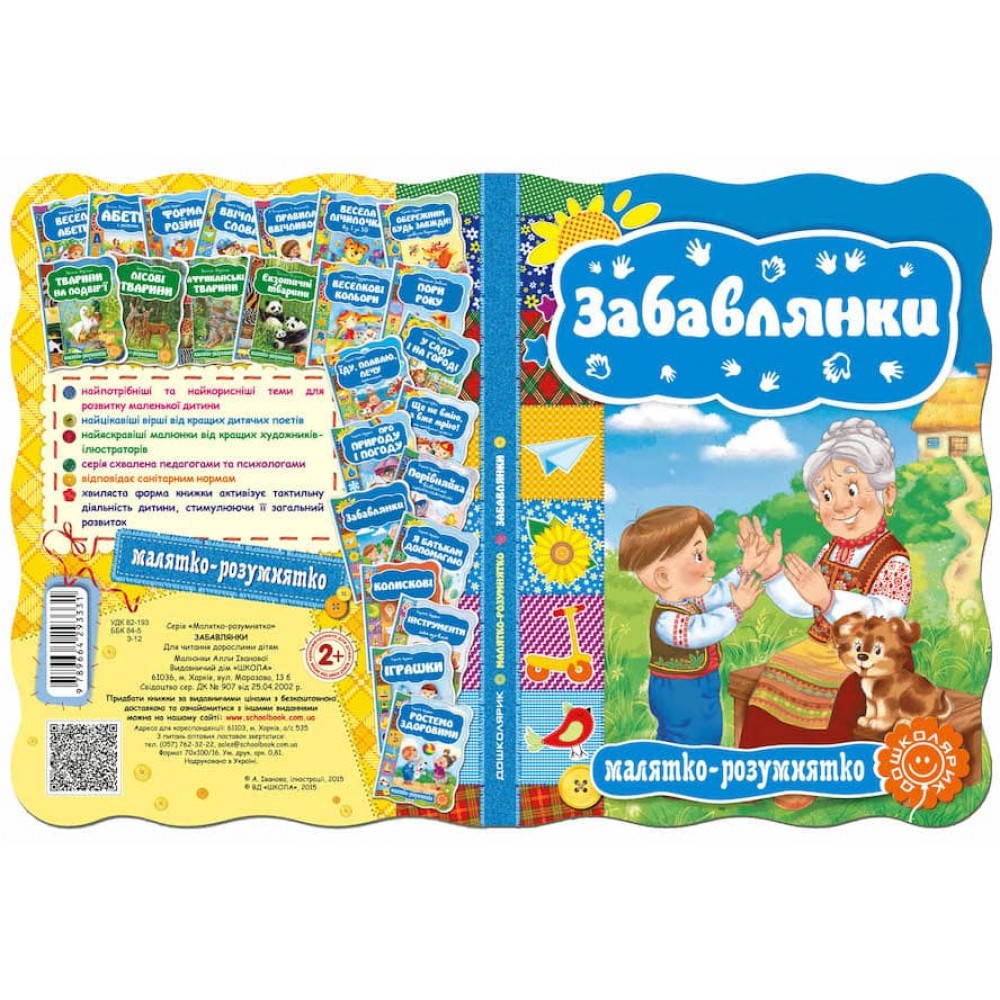 Основне завдання забавлянок — фізичний, естетичний та духовний розвиток дитини, покликані зміцнювати її за допомогою відповідних рухів та жестів. Ця книга для наймолодших читачів, з якими матуся розмовляє ласкавою мовою, розповідає-наспівує казочки, жарти, помалу привчаючи дитину рахувати, розрізняти кольори тощо. У книжці зібрані улюблені забавлянки малят, з якими зростали багато поколінь, героями віршиків є діти, і тваринки, сонечко та дощик. Разом із чудовими малюнками Алли Іванової вони створять радісний бадьорий настрій дитини та дорослого, який буде її забавляти веселими віршиками.