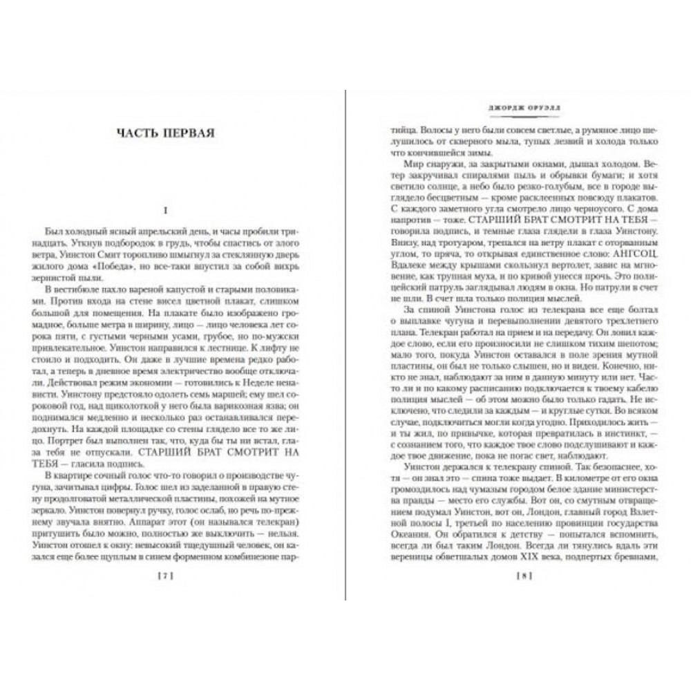 Зображене автором суспільство майбутнього засноване на тотальній несвободі особистості, пропаганді та відкритому насильстві – переможців, згідно з гірким і грізним прогнозом автора, у вигаданій державі Океанія до 1984 року; однак у його зовнішності легко впізнаються реалії радянського ладу 1930-1940-х років та інших диктаторських режимів – бо, за Орвеллом, усі диктатури стоять одна одну…