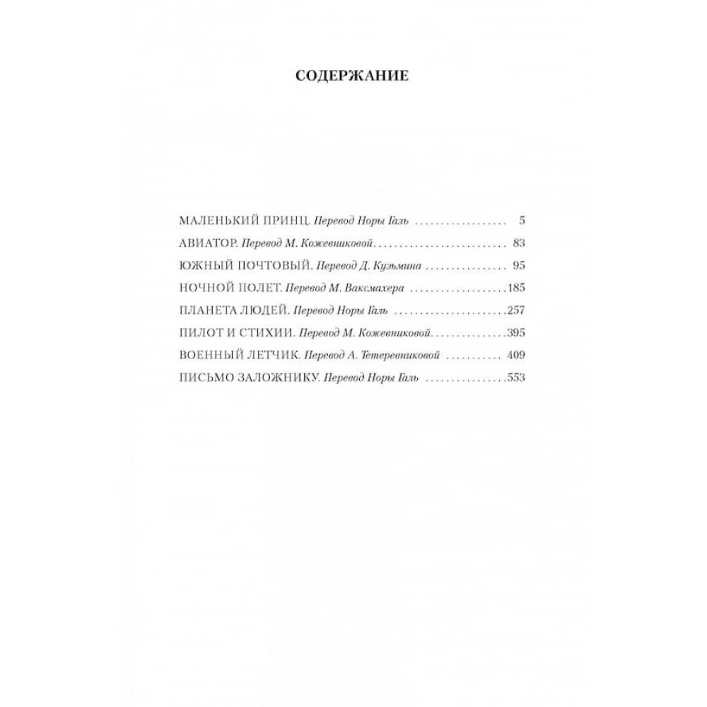 До цього видання увійшли найкращі твори Антуана де Сент-Екзюпері. Читачі найрізноманітніших літературних уподобань отримають задоволення від цієї прекрасної, захоплюючої прози і, можливо, відкриють для себе щось дуже важливе.