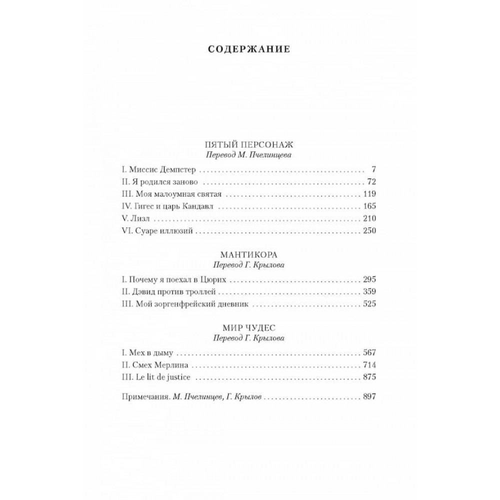 «Мантікора», яка пішла за «П'ятим персонажем», була удостоєна головної канадської літературної нагороди — Премії генерал-губернатора. "Світ чудес" - завершальний роман "Дептфордської трилогії" - являє собою автобіографію мага і чарівника Магнуса Айзенгріма, історію його підйому з прірви приниження до вершин всесвітньої слави.