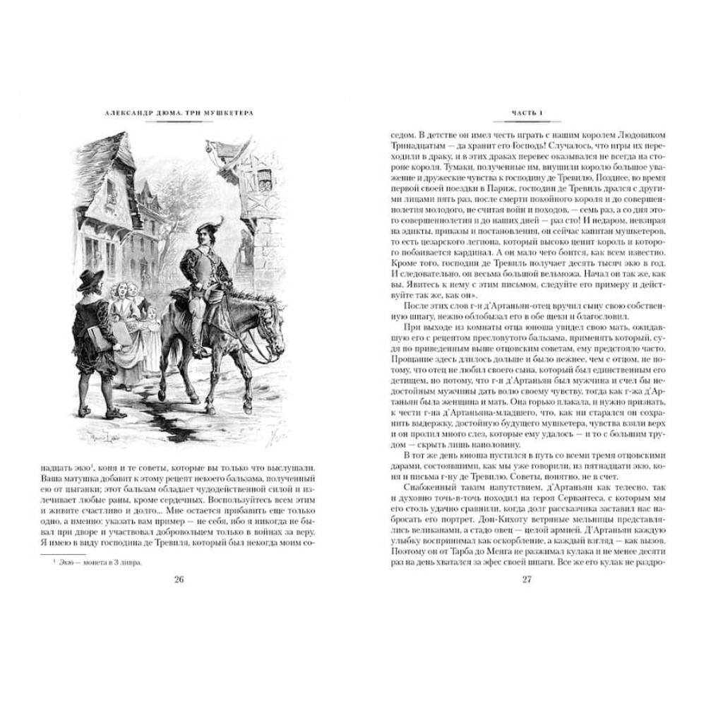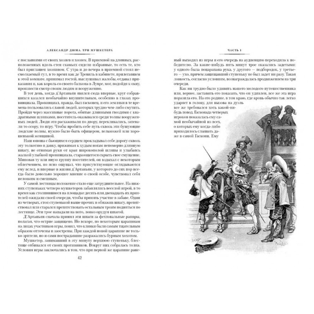 "Три мушкетери" - найбільший авантюрно-пригодницький роман, найзнаменитіша книга блискучого французького романіста Олександра Дюма. Незліченна кількість разів екранізована історія зухвалих пригод гасконца д'Артаньяна, незважаючи на майже двохсотрічний вік, живе, всупереч законам часу та забуття, з колишньою нев'янучою силою.