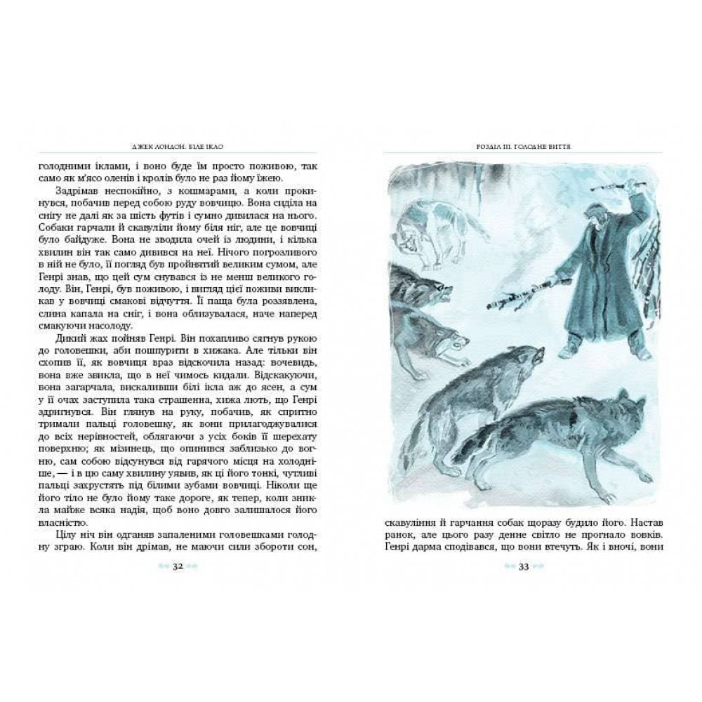 Пригодницька повість класика американської літератури Джека Лондона описує події часів золотої лихоманки на Алясці. Жорстокий і суворий світ оточує головного героя Біле Ікло, напіввовка-напівсобаку, від самого його народження і загрожує неминучою загибеллю. Лише зустріч із добрим хазяїном допомагає йому знайти себе. Це книжка про силу любові, вірності та відданості, про справжню дружбу між твариною і людиною.