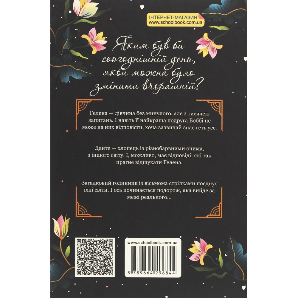 Яким був би сьогоднішній день, якби можна було змінити вчорашній? Головна героїня Гелена — дівчина без минулого, але з тисячею запитань. І навіть її найкраща подруга Боббі не може на них відповісти, хоча зазвичай знає геть усе. Данте — хлопець із різнобарвними очима, з іншого світу. І, можливо, має відповіді, які так прагне відшукати Гелена. Загадковий годинник із вісьмома стрілками поєднує їхні світи. І ось починається подорож, яка вийде за межі реального…