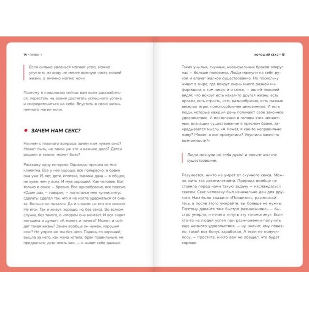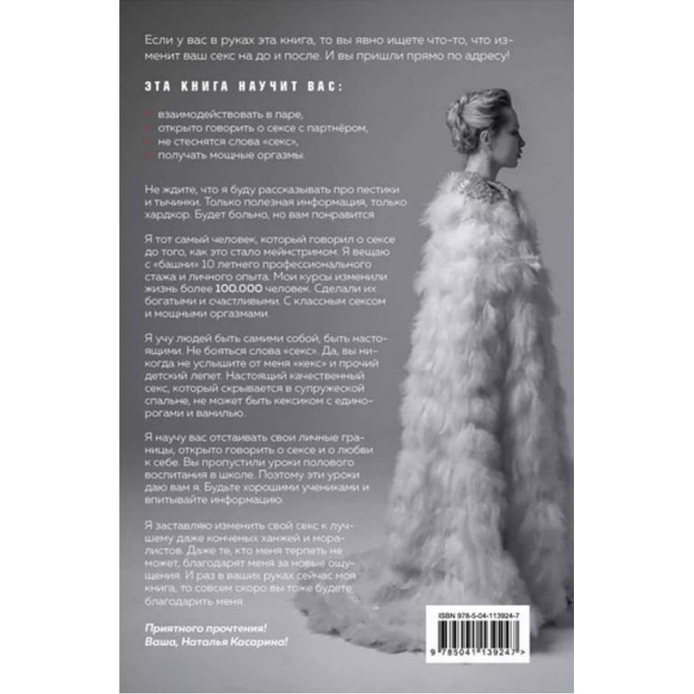 Відома блогерка з мільйонною аудиторією Наталя Касаріна як ніхто розуміється на питаннях сексуальних стосунків. Дипломований психолог і сексолог, Наталя прекрасно розуміє аудиторію та її головні запити на найінтимніші й найважливіші теми людських стосунків. Як дозволити собі бути вільною, сексуальною і щасливою, як навчитися любити своє тіло - ці та інші поради, зібрані з багаторічного досвіду роботи з аудиторією, перевірені на практиці, допоможуть відкрити нові грані своєї сексуальності.