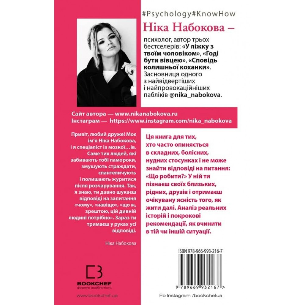 Усі ми так чи інак стикаємося з людьми, які викликають подив, злість, біль, розчарування. І чомусь надміру до них прихиляємося. Ніби й коїть людина щось дивне, а однаково до неї тягне... Ця книжка для тих, хто часто потрапляє у складні, болісні, тяжкі, нудні стосунки й не може знайти відповідь на запитання: «Чим зарадити?». У ній ти впізнаєш своїх близьких, коханих, друзів і нарешті збагнеш, як рухатися далі. Аналіз реальних історій і покрокові рекомендації, як чинити в тій чи тій ситуації.