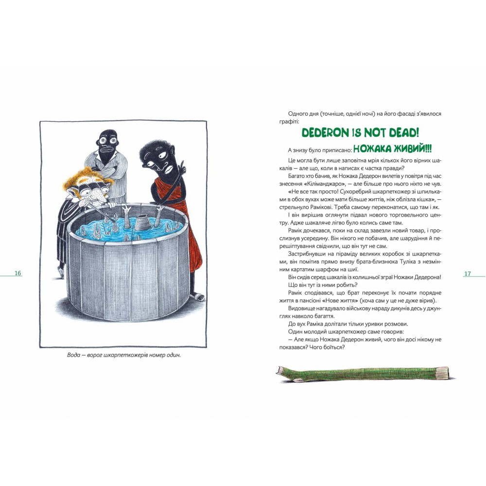 Шкарпеткожери – загадкові й добрі створіння, які полюбляють шкарпетки. Як полюбляють? Апетитно, дегустуючи, насолоджуючись кожним відтінком смаку. Тобто вони їх їдять. Може, ваші розпаровані шкарпетки теж упали в око одному чи й не одному шкарпеткожеру й тепер ви не можете їх знайти? Принаймні я сподіваюся, що з моєю теплою, синьою, рідною шкарпеточкою саме це й трапилося, і так вона не загинула безславною смертю. Важливо, що шкарпеткожерство, як і будь-яка високоорганізована спільнота, має свої тонкощі суспільства. Наприклад, є вчені, які серйозно вивчають феномен шкарпеткожерства. Але не завжди з позитивною метою. Є шкарпеткожерські банди, і це зовсім не кумедно, як спершу може видатися неосвіченим і шкарпеткожеронепосвяченим. Є й родини шкарпеткожерів, як же без них! І є історії кохання шкарпеткожерів… Історії звитяги… Історії сорому… Тобто цих оповідей може вистачити на своєрідний шкарпеткожерський фольклор. А ви усміхалися: шкарпеткожери, шкарпеткожери, що воно таке. Хм, усе серйозно! «Шкарпеткожери повертаються» — друга книга трилогії Павела Шрута й Ґаліни Міклінової. У продовженні історії Хихотунець опиняється в Африці, потрапляє до рук дивного вченого, який не з найкращими намірами збирає шкарпеткожерів Африки. Проте не тільки на Хихотунця чатують пригоди, а й на Раміка, Туліка й Ножаку Дедерона. Так, виявилося, що останній усе ж живий... А ще з’явиться чарівна шкарпетожерочка Кава. Амур-мур-мур :) Вигадати цікавих створінь — половина справи. Треба їх намалювати. Але якщо шкарпеткожери – незвичні гурмани, їх і намалювати треба незвично й незвичними. Намалювати так, щоб виникло бажання роздивлятися кожного героя. Здогадуєтеся, що Ґаліні Мікліновій це вдалося?.. Персонажів і так цікаво вифантазовувати, а на ілюстраціях вони ще колоритніші. А є й мультик про любителів шкарпеток. Адже було б складно стриматися й не екранізувати таку історію! «Шкарпеткожери» — нові герої й нова історія для тих, хто вже прочитав усі казкові й не дуже книги, кого навряд чи чимось здивуєш. Що можна написати, якщо вже про все та про всіх є? Щось зовсім незвичне. Щось жахливо шкарпеткожерське!