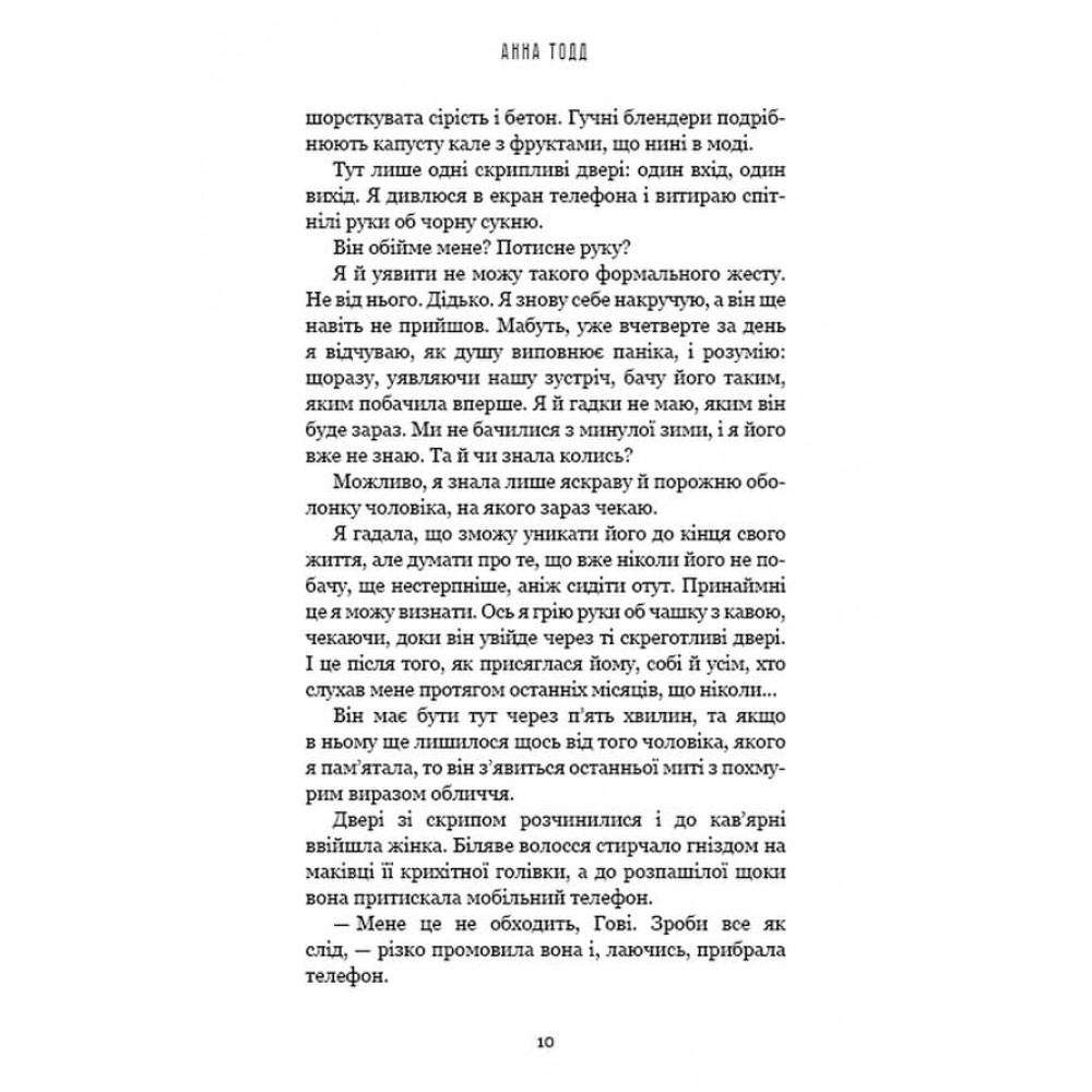 Карині лише двадцять, а вона вже досягла певного статусу в суспільстві. Дівчина є власницею невеличкого будиночка, щовівторка чемно обідає з татом та його новою дружиною, отримує задоволення від роботи. Але це зовнішній бік її життя, насправді Каріна відчайдушно прагне спокою та усамітнення. Зустріч із мовчазним загадковим Кейлом руйнує її крихкий душевний спокій. І хто сказав, що не можна закохатися раптово і пристрасно? І чому яскраві зірки здаються сумними? Сімейна драма, історія кохання, пошуки сенсу життя - все це на сторінках нового бестселера від Анни Тодд.