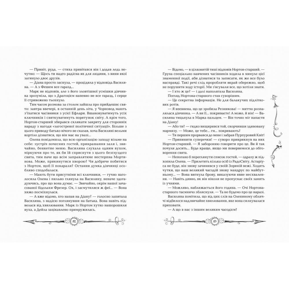У третій частині серії «Часодії» описується свято — Пурпуровий Квіт розквітнув, загроза минулася, бо питання про Часовий Розрив вирішене, хоча й не всі повернулися після подій, що сталися наприкінці зміни у спортивному тренувальному таборі. Новим ключником, берегинею одного з ключів стане Захарра Драгоцій, Василина поглиблено вивчає часодійство, призвичаюється до життя з батьком, Оленою Мортиновою, Нортом та Дейлою у Чорноводі, знайомлячись з устроєм життя в замку та досліджуючи його вежі. Попереду вступні випробування і навчання у Школі світлочасу й темночасу, подорож в Часовий Розрив, пошуки замку Ефларуса й повернення часу у найлегендарніший із часових замків.