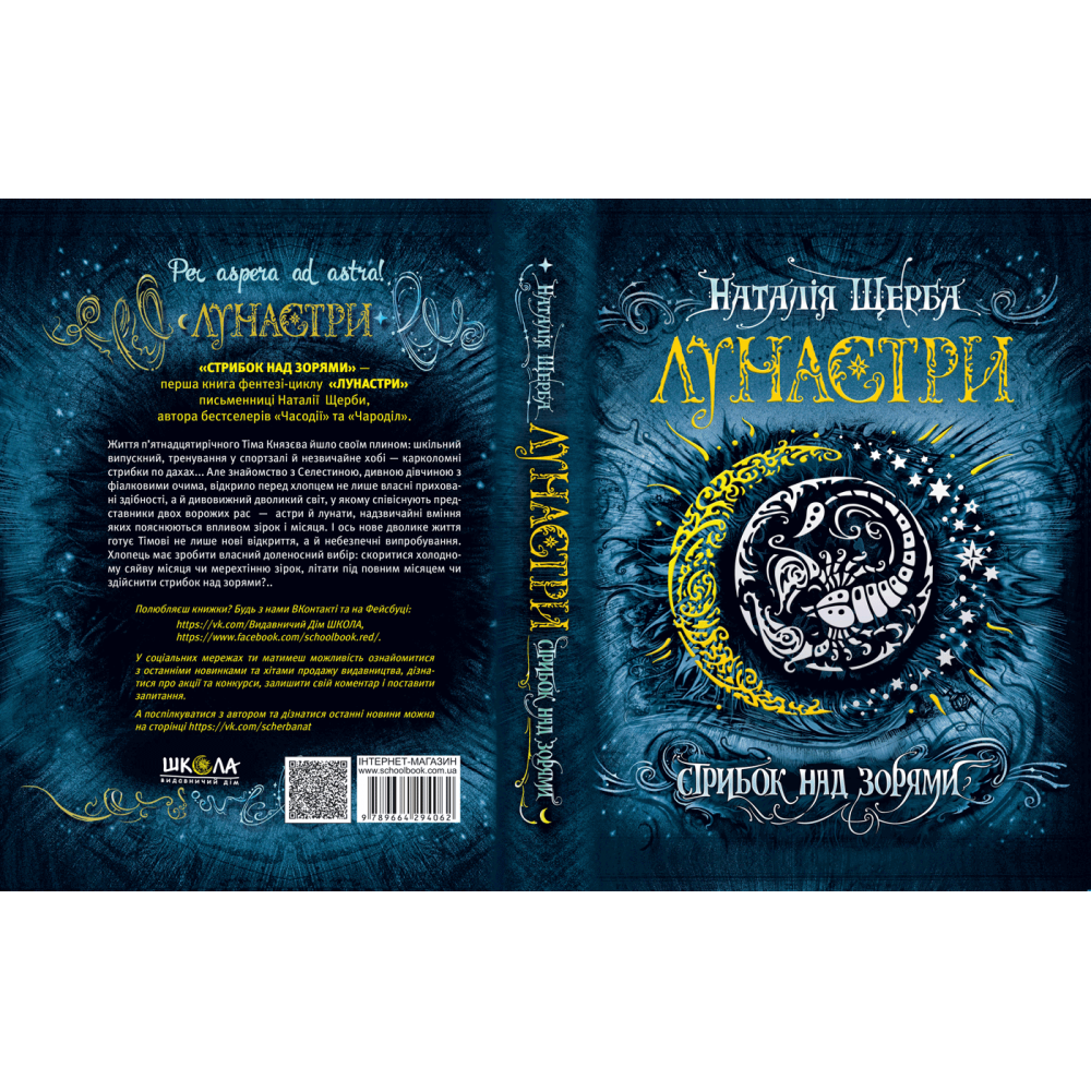 «Стрибок над зорями» — перша книга фентезі-циклу «Лунастри» письменниці Наталії Щерби, яка відома читачам як авторка бестселерів «Часодії» та «Чароділ». Події відбуваються у невеликому містечку Яховськ, у якому зустрінуться дійові особи. Що ж такого фантастичного у цій книзі? Це можливості героїв, які не властиві звичайним людям та життя, у якому править місяць та зорі. Астри і Лунати — дволикі раси людей, які дотримуються законів ночі. Астри вклоняються зіркам, які допомагають високо стрибати, а лунати — місяцю, який дає їм силу літати. Але є ще й третій різновид рас, який зустрічається вкрай рідко і називається лунастри. Вони наділені особливими можливостями, бо вміють і літати, і стрибати. «Люди не полюбляють тих, хто вирізняється. Особливо, коли вирізняються здібностями лютих ворогів. Люди ненавидять кращих за краще». Вічне протистояння астрів та лунатів, боротьба за Розколи, фантастичні перетворення та гра у «фісташки» на Квадратах — послідовність сюжетів захоплює читача. Виникає багато запитань та відповіді ховаються на сторінках книги, і лише уважні зможуть їх відшукати.