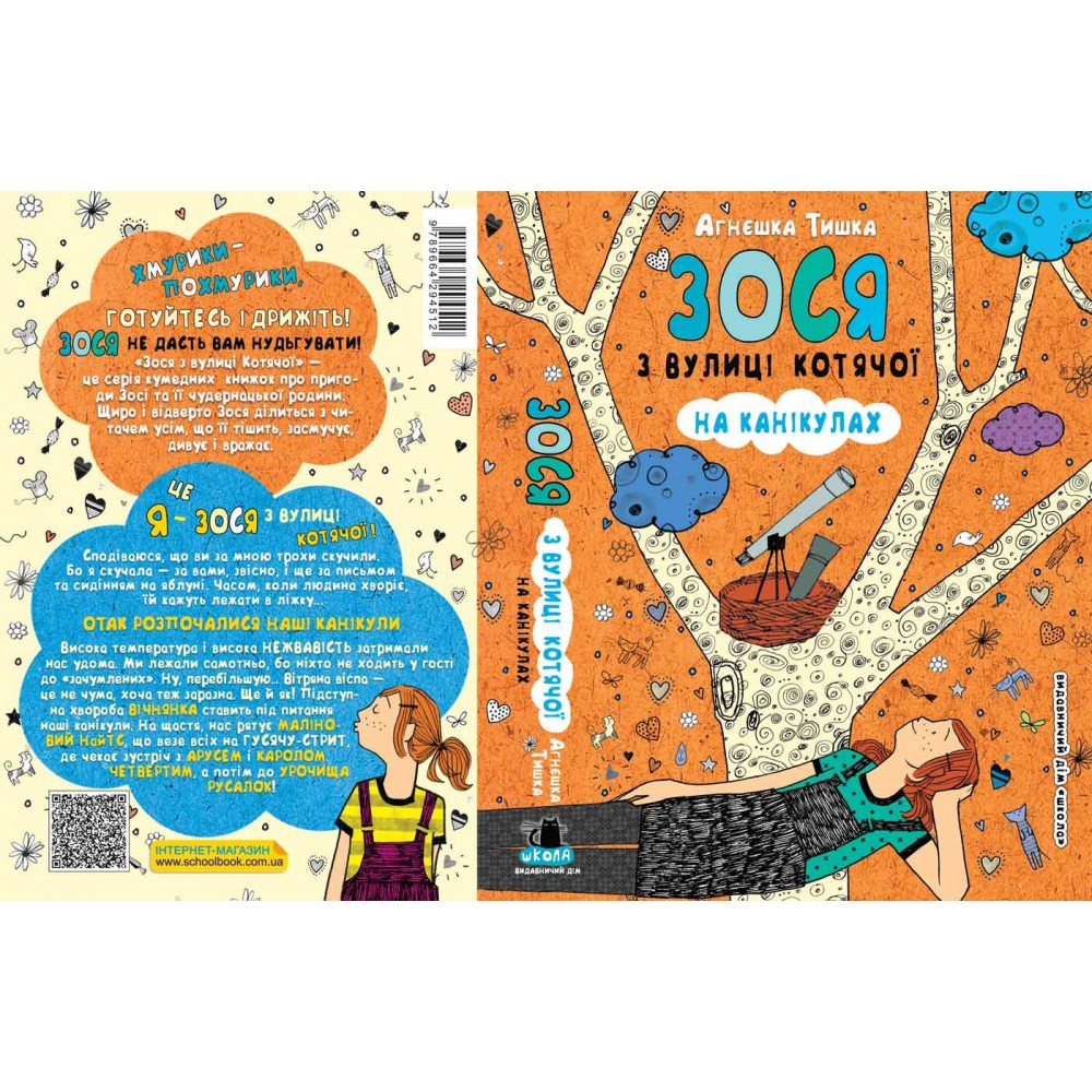 У третій книжці серії — На канікулах — на читачів чекають чергові несподіванки. Привіт, це я, Зося з вулиці Котячої, і я сподіваюся, що ви за мною трохи скучили. Бо я скучала — за вами, звісно, і ще за письмом у своєму щоденнику та сидінням на яблуні. Але тепер нам з вами ніколи нудьгувати — УРА!!! Попереду канікули! Та, на жаль, я та моя молодша сестра Маня підхопили підступну хворобу ВІЧНЯНКУ (ох, ця дитина завжди перекручує слова!) і наша пильна та дуже гігієнічна мама наказала лежати нам у ліжку... Отак-от розпочалися наші довгоочікувані канікули. Висока температура і висока НЕЖВАВІСТЬ (це слівце, звісно, теж вигадала моя сестра) затримали нас удома. Навіть садок навколо будинку здавався нам чудовою заморською країною, коли ми лежали в наших постелях. І нудьгою віяло, наче протягами, я б сказала, пренудними протягами. А лежали ми самотньо, бо нікому з дітей не можна ходити в гості до «зачумлених». Ну, перебільшую… Вітряна віспа — це не чума, хоча теж заразна. Ще й як! НА ЩАСТЯ, нас, як завжди, порятувала найкраща та найартистичніша тітка у світі — тітка Маліна!