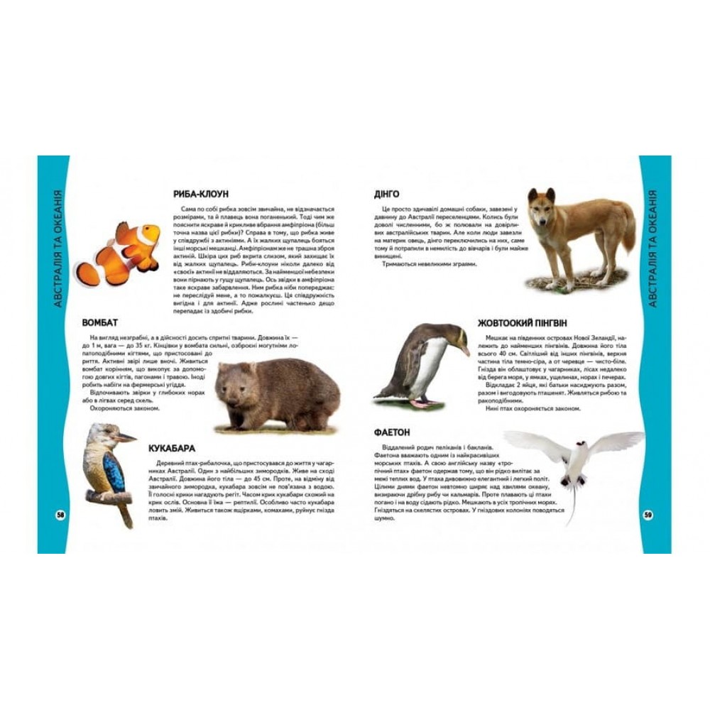 «Енциклопедія тварин» — це ілюстроване подарункове видання про дивовижний і різноманітний живий світ планети Земля. Наша книга розповість про найцікавіших тварин — від найвідоміших до найдивовижніших і мало вивчених. Читач познайомиться в енциклопедії з мешканцями найвіддаленіших куточків Землі: Північного і Південного полюсів, африканських саван і пустель, південноамериканських памп і вологих тропічних лісів, гірських ущелин і прямовисних скель. Хто такі турако і пуду? Де живе і чим харчується бабіруса? Яку максимальну швидкість може розвинути гепард? Які тварини перебувають у зоні ризику і занесені до Червоної книги? Відповіді на всі ці та багато інших запитань ви дізнаєтеся, прочитавши нашу енциклопедію. Тваринний світ — це величезна екосистема, що включає не тільки ссавців, птахів, а й риб, амфібій та комах. Людина — також частина цього багатогранного світу, саме тому всім нам так важливо знати про особливості царства тварин і берегти братів наших менших.