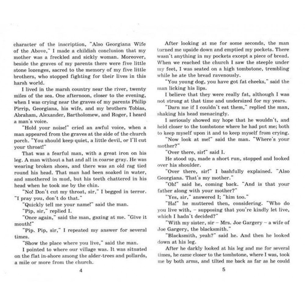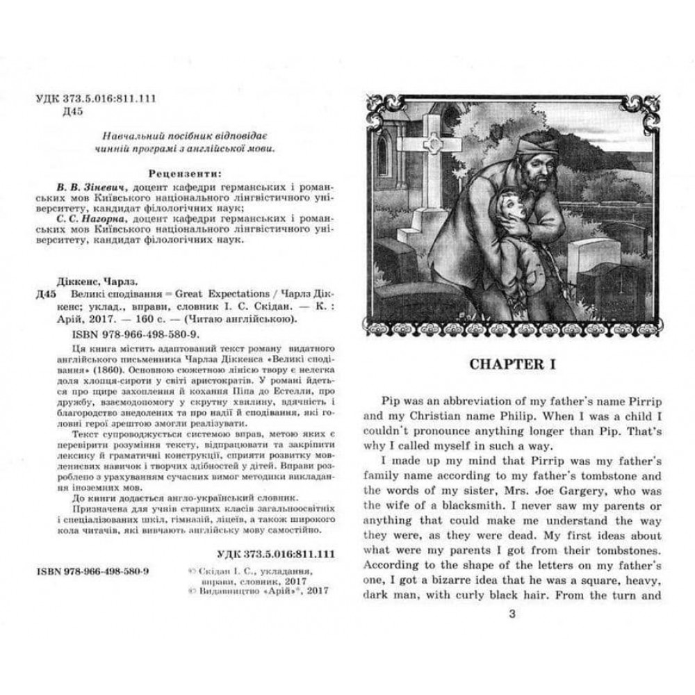 Ця книга містить адаптований текст роману видатного англійського письменника Чарлза Діккенса «Великі сподівання». Основною сюжетною лінією твору є нелегка доля хлопця-сироти у світі аристократів.