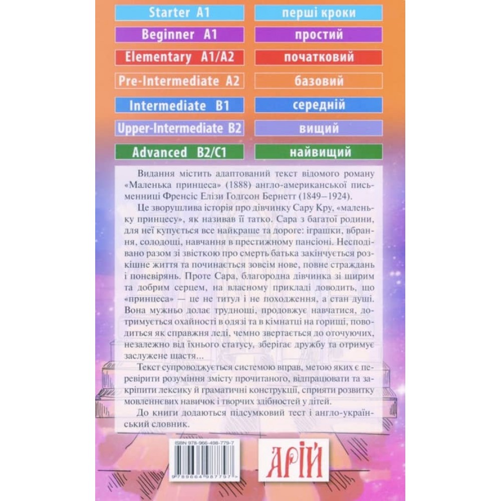 Ця книга містить адаптований текст відомого роману «Маленька принцеса» англо-американської письменниці Френсіс Елізи Годґсон Бернетт.