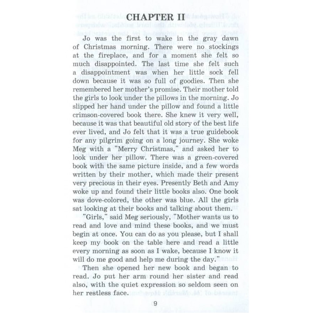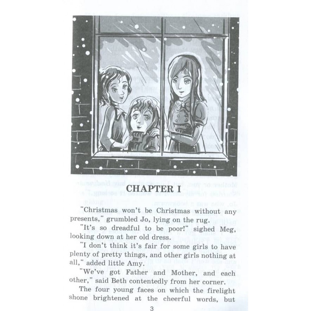 Ця книга містить адаптований текст відомого та надзвичайно популярного роману «Маленькі жінки» видатної американської письменниці Луїзи Мей Олкотт, у якому розповідається про життя чотирьох сестер Марч.