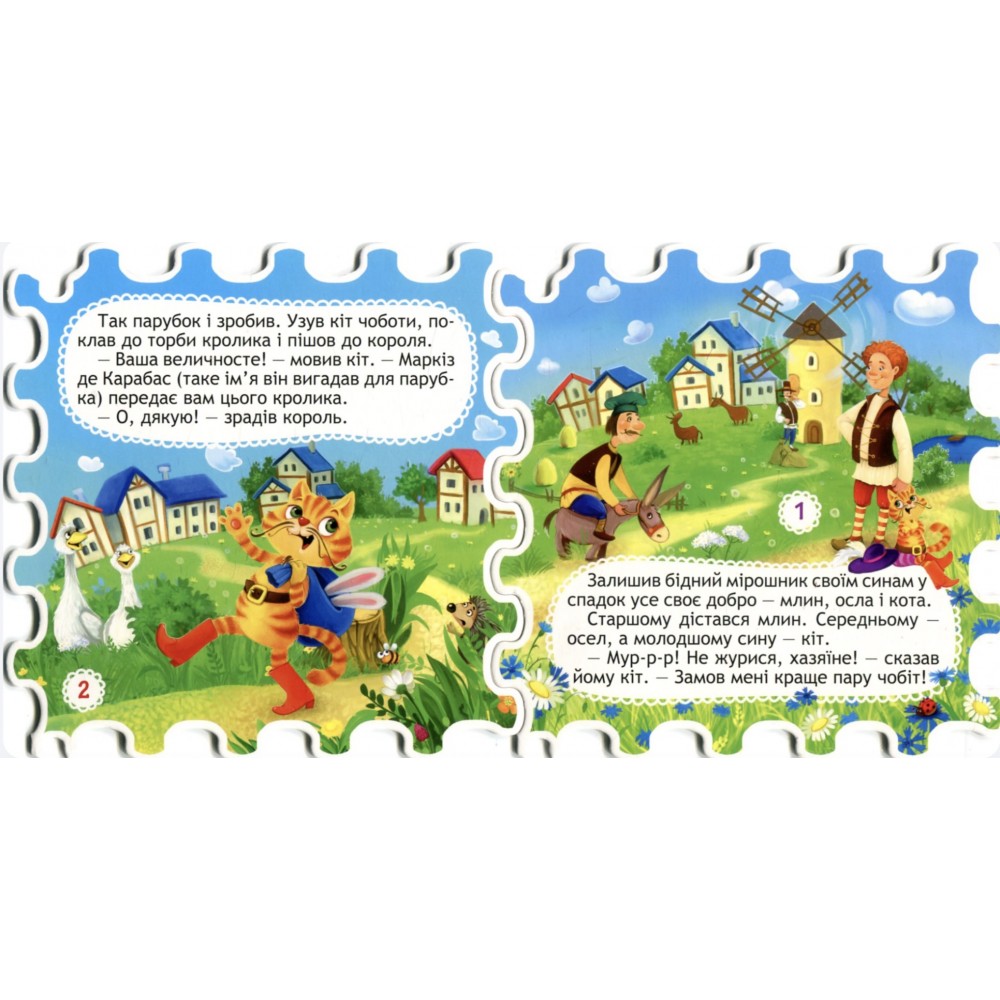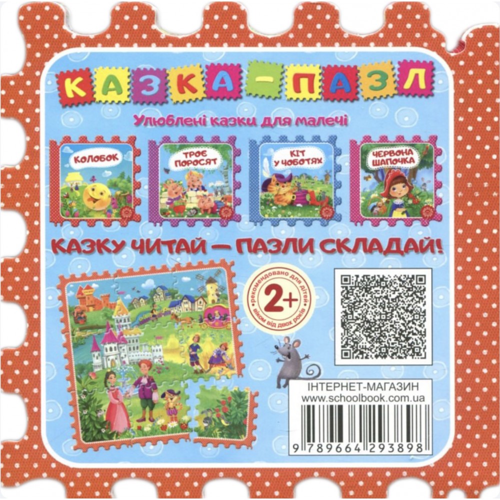 До серії книжок «Казка-пазл» увійшли 4 книжки з улюбленими казками для малечі: «Колобок», «Троє поросят», «Кіт у чоботях», «Червона шапочка». Вони рекомендовані для читання дітям віком від 2-х років. «Казка-пазл» від «Дошколярик™» виготовлена з високоякісного картону із дотриманням усіх державних санітарних вимог, має округлі куточки сторінок і є безпечною для дитини. Окрім цього, книжки дуже незвичайної форми: вони складаються з 10 «аркушів-пазлів», на одному боці яких текст казки поєднаний із зображеннями, а на іншому — лише малюнки казкової історії та героїв. Проілюструвала казки серії талановита майстриня Соня Каа, малюнки якої яскраві, щирі та доброзичливі. Для того, щоб не заплутатися і легко збирати пазл, кожен елемент пронумерований. Позаду кожної «казки-пазл» зображені обкладинки всіх книжок серії, а також малюнок готового складеного пазлу.