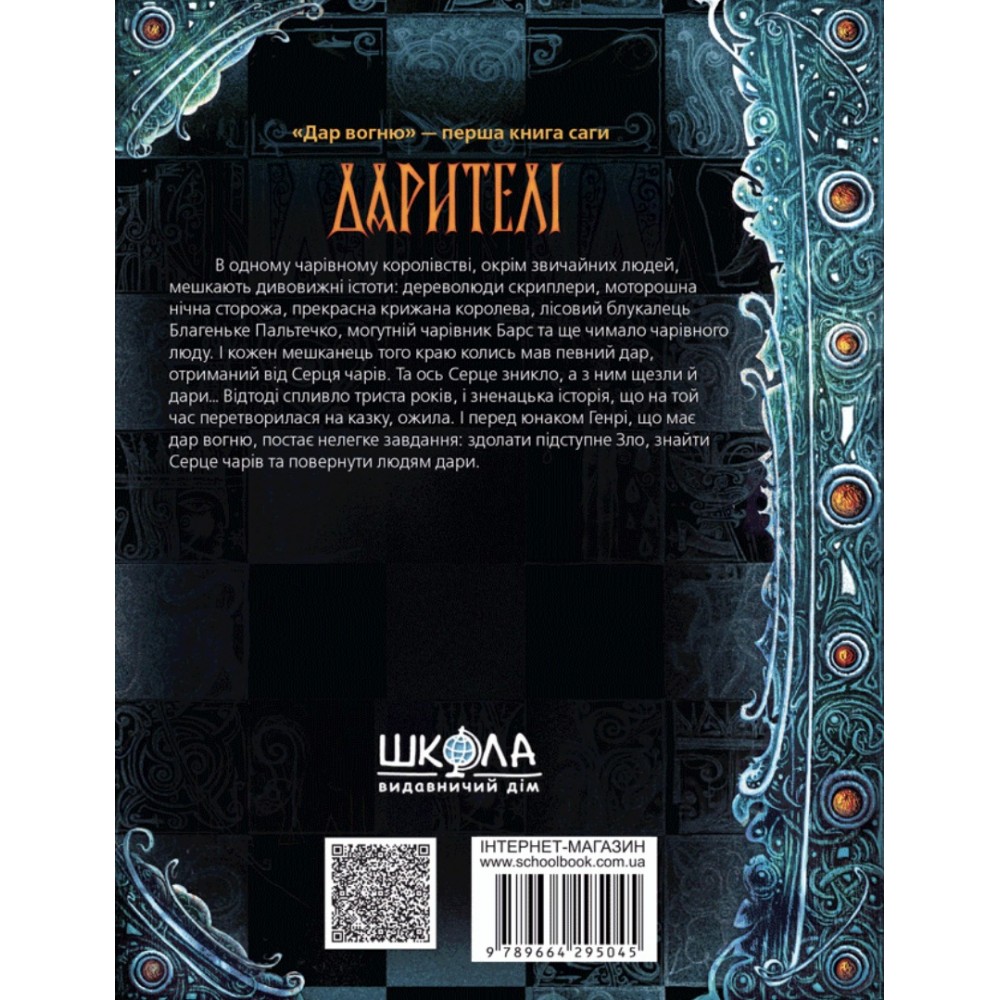 В одному чарівному королівстві, окрім звичайних людей, мешкають дивовижні істоти: дереволюди скриплери, моторошна нічна сторожа, прекрасна крижана королева, лісовий блукалець Благеньке Пальтечко, могутній чарівник Барс та ще чимало чарівного люду. І кожен мешканець того краю колись мав певний дар, отриманий від Серця чарів. Та ось Серце зникло, а з ним щезли й дари… Відтоді спливло триста років, і зненацька історія, що на той час перетворилася на казку, ожила. І перед юнаком Генрі, що має дар вогню, постає нелегке завдання: здолати підступне Зло, знайти Серце чарів та повернути людям дари.