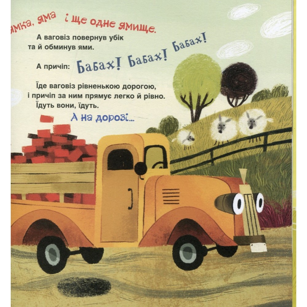 Це історія про те, як ваговіз та його друг, непосидючий причіп, працюють від ранку до ночі та розвозять різні вантажі. Чого тільки не випадає їм дорогою! Ямки і ямища, гори й горбочки, калюжі й дощі. А ще коли гуси вийдуть на дорогу, а як трапиться крутий поворот! Так і занедужати можна. Добре, що поруч є вірний друг, який завжди прийде на допомогу!