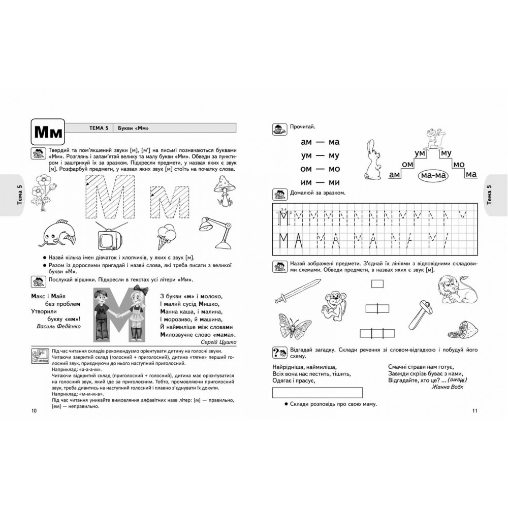 Посібники серії однаково ефективно можуть бути використані як для індивідуальних занять, так і для колективної роботи з дітьми у дошкільних навчально-виховних закладах. Займаючись за цим посібником, дитина ознайомиться з літерами українського алфавіту, оволодіє основними способами читання, навчиться правильно інтонувати розповідні, питальні, спонукальні речення, збагатить словниковий запас, розвине усне мовлення, а також навчиться писати друковані літери.