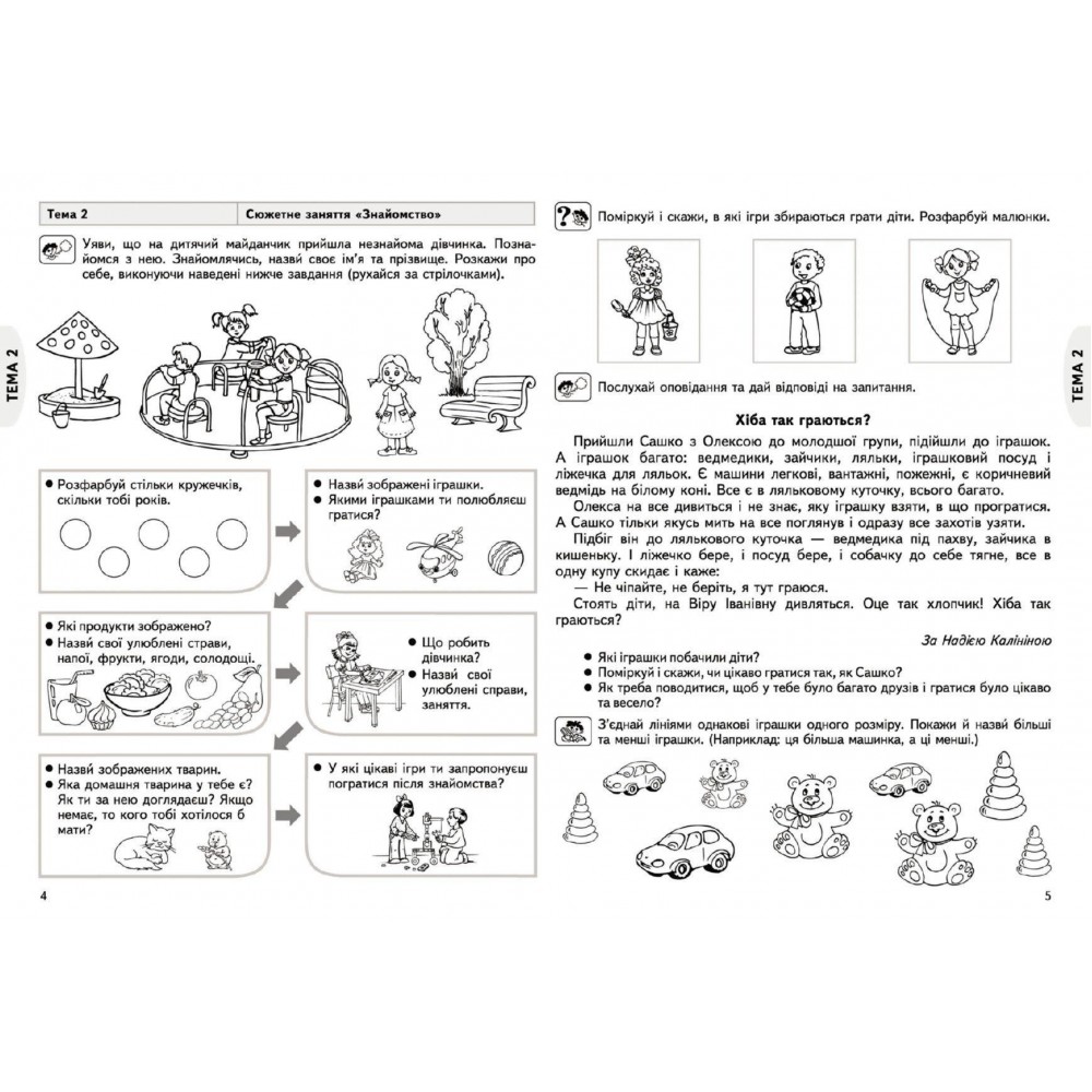 Зошит укладено за чинними програмами розвитку, навчання і виховання дітей середнього дошкільного віку («Дитина», «Дитина в дошкільні роки», «Українське дошкілля»). Працюючи за цим зошитом, дитина навчиться визначати певний звук у словах, розрізняти на слух короткі та довгі слова, класифікувати предмети й називати узагальнювальні слова, складати короткі розповіді, казки тощо, аналізувати вчинки, висловлювати своє ставлення, робити висновки, вільно використовувати слова з різних сфер життєдіяльності.