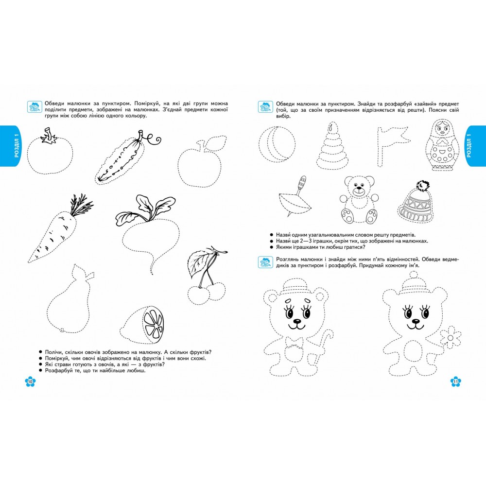 Цей унікальний за змістом і методичним наповненням робочий зошит допоможе підготувати руку дитини старшого дошкільного віку до письма у школі. Робота передбачає наявність певних елементарних графічних навичок: вміння працювати із зошитом і олівцем, проводити лінії, обводити за пунктиром та зафарбовувати прості контури тощо. Матеріал кожного розділу відповідає принципу інтеграції, тобто до занять з підготовки руки до письма інтегровано матеріал з природознавства, математики, логіки, розвитку мовлення тощо. Це дає дитині змогу не лише набути певних графічних навичок, а й закріпити знання про природу, культуру, людей, саму себе. У зошиті використано найсучасніші методики та спеціально дібрані цікаві й різноманітні вправи з розвивальними завданнями, які враховуюють провідні освітні лінії розвитку. Істотним доповненням до навчальної роботи з підготовки до письма є комплекс гімнастичних вправ для пальчикі, для зору, а також різноманітних розвивальних і рухливих ігор для закріплення здобутих навичок.