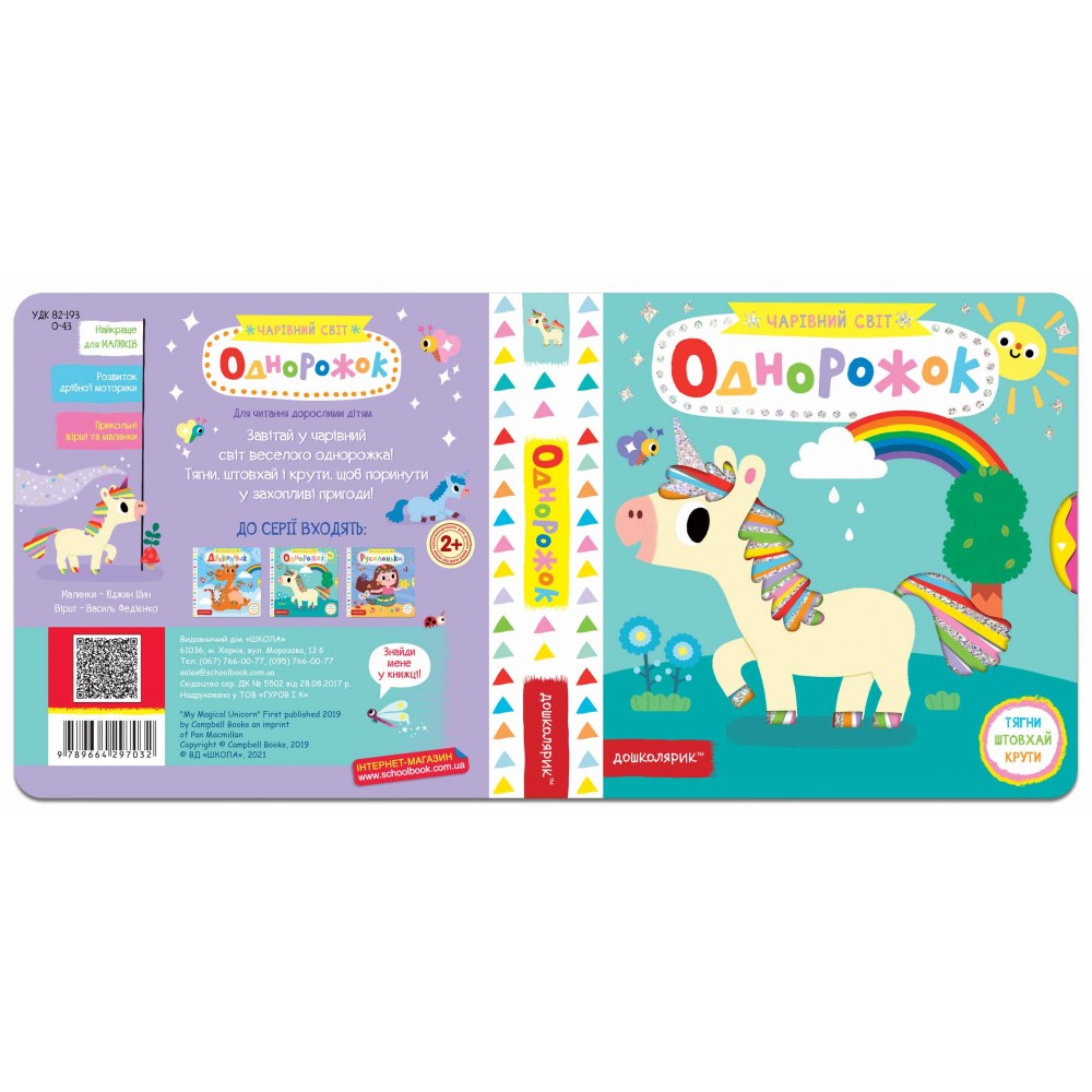 Кожна з книжок серії має рухомі елементи за сюжетом, тож малюкам буде цікаво відкрити чарівний світ казки і побавитися разом із героями. Цікавинкою книги, зокрема, є застосування фольги, завдяки чому картинки ніби «оживають» — і дитина може побачити і яскраве полум’я вогню з пащі дракончика, і мінливу гривку однорожка, і лискучий хвіст русалоньки. Ці книги з яскравими малюнками та з цікавим сюжетом стануть чудовим подарунком для малечі. Читайте і грайтеся разом із дитиною!