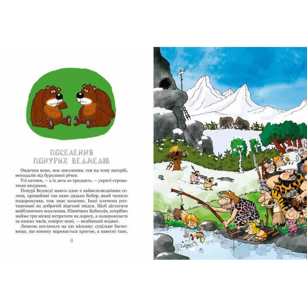 Гадаєте, Льодовиковий період — це похмура, непривітна доба, у якій лише виє хуртовина та гарчать шаблезубі тигри? А от італійський письменник Лучано Мальмузі впевнений, що навіть у цій порі було чимало цікавого, тому вирішив додати іскру гумору та іронії до дещо сухих історичних хронік. Результатом цих старань став цикл дитячих повістей про первісних людей. Розповідь про всі перипетії буремного життя неандертальців ведеться від особи їх сучасника та безпосереднього учасника численних пригод — жвавого хлопчини на ім'я Буу. У першій частині читачі стануть свідками приручення першої тварини, винайдення ліфту (або його незугарної та крихкої подоби), вболіватимуть за команду Понурих Ведмедів на спортивних змаганнях і дізнаються про особливості доісторичної системи освіти. Виявляється, навіть про такі суворі часи можна розказати із посмішкою, й у цьому автору вправно допоміг ілюстратор дядечко Микола Воронцов, органічно доповнивши незвичайну історію своїми яскравими та кумедними ілюстраціями.