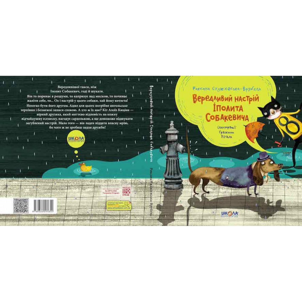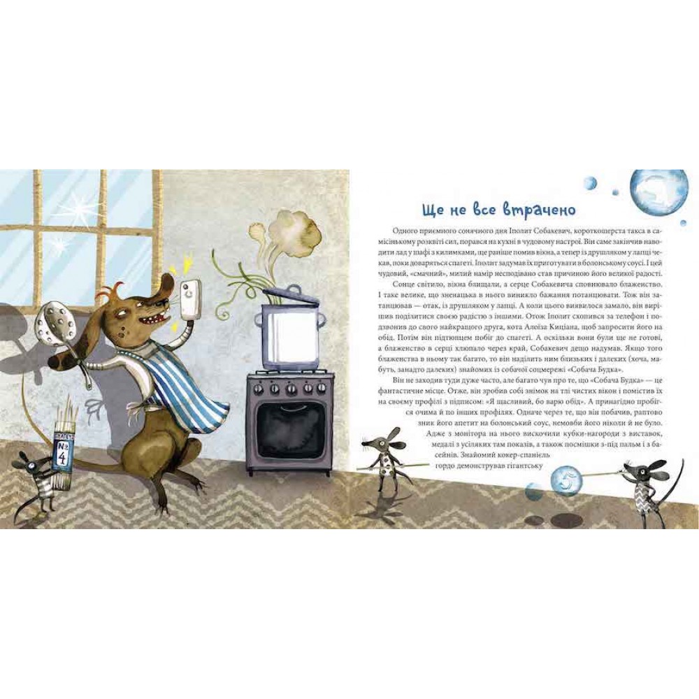 Настрій — така дивна річ, яку швидко можна загубити й довго шукати. З вами таке траплялося? Роксана Єнджівська-Врубель знайшла одного «персонажа», якому б не завадило існування бюро «Втраченого настрою». Соціальна мережа «Собача будка» (щось на кшталт людського інстаграму) майорить різноманітними постами про кращі роки життя, про його неповторність та особливість, а по шибці вікна ллє дощ. Як тут не завити про свою самотність? Саме цим і займався Собакевич. У такі «плаксиві» дні, не тільки у книжках, на допомогу мають прийти справжні друзі. Серед усіх своїх проблем Іполит забув, що має дещо більше, ніж фотографії та сонце за вікном. Він має друга, який не дозволить нудьгувати й занурюватися у депресію з головою. Коли ми починаємо вірити у дива? Так, ви праві, на Різдво. До Іполита й Киціана завітав несподіваний гість. Чи варто нам знати, як виглядав, що з собою приніс, що говорив? Мені здається, що ні. Адже головне, що він прийшов, що з ним можна поспівати колядок, повечеряти й поговорити про все на світі… «Мрія, що я хочу мати мрію» — не далекоглядна перспектива. Коли здійснюється одна, обов’язково мрійте далі, бо можна залишитися невдоволеним, як наш Іполит Собакевич!