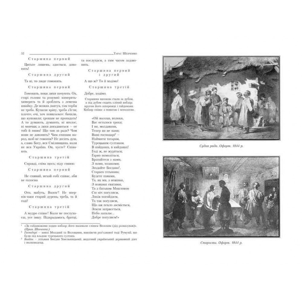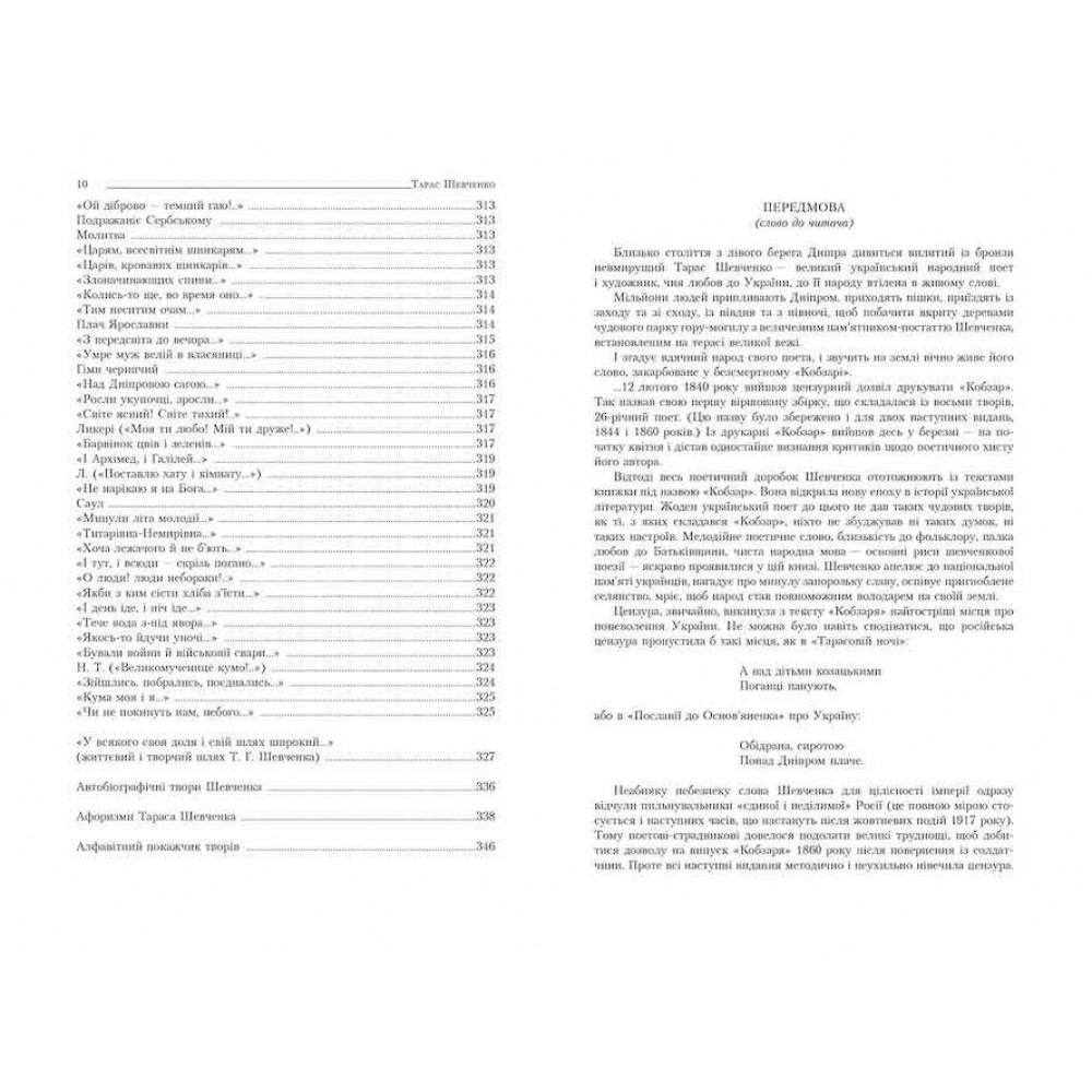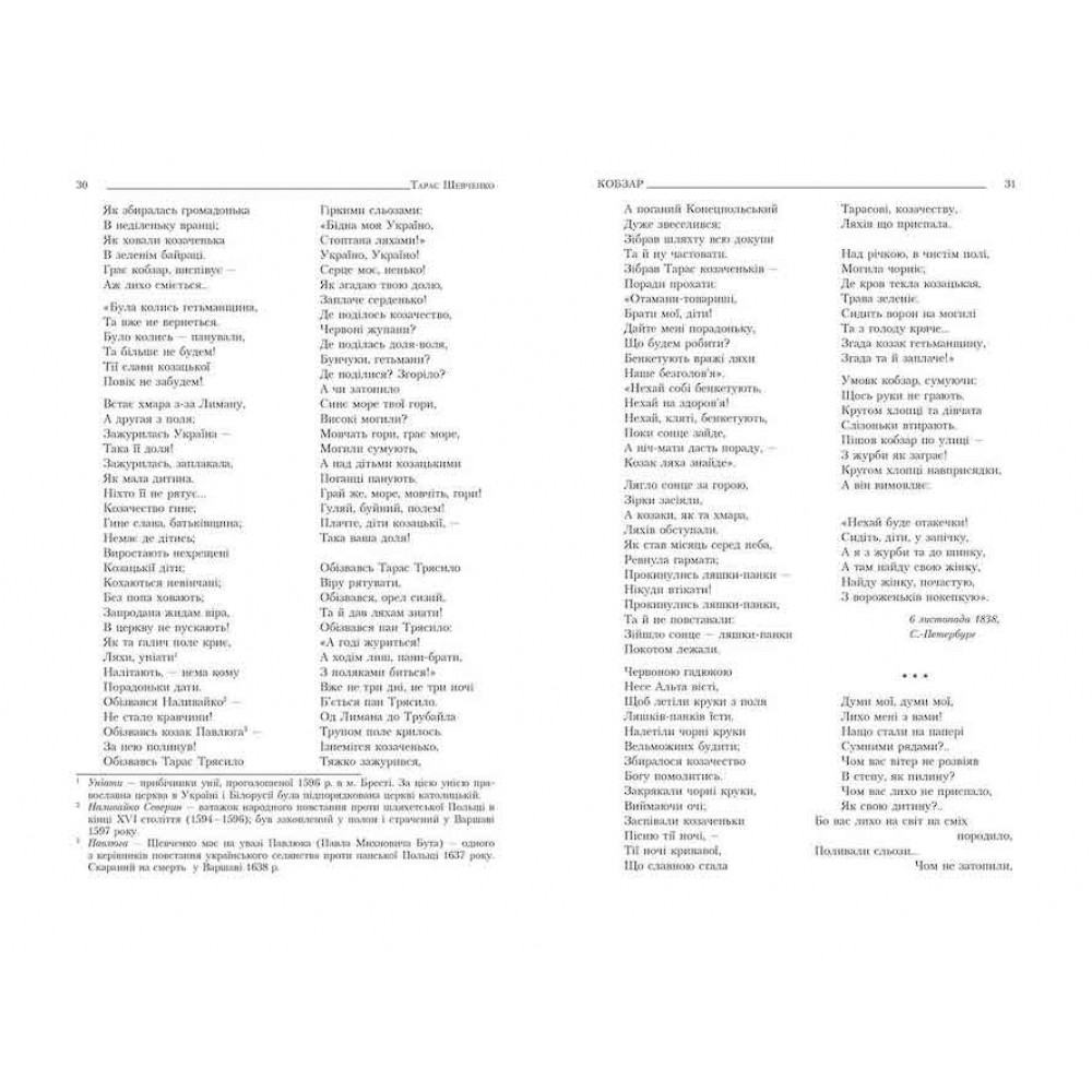 12 лютого 1840 року вийшов цензурований дозвіл друкувати «Кобзар». Так назвав свою першу віршовану збірку, що складалася із восьми творів, 26-річний поет. (Цю назву було збережено і для двох наступних видань, 1844 і 1860 років). Із друкарні «Кобзар» вийшов десь у березні — на початку квітня і дістав одностайне визнання критиків щодо поетичного хисту його автора. Відтоді весь поетичний доробок Шевченка ототожнюють із текстами книжки під назвою «Кобзар». Вона відкрила нову епоху в історії української літератури. Жоден українських поет до цього не дав таких чудових творів, як ті, з яких складався «Кобзар», ніхто не збуджував таких думок, ні таких настроїв. Мелодійне поетичне слово, близькість до фольклору, палка любов до Батьківщини, чиста народна мова — основні риси шевченківської мови — яскраво проявилися у цій книзі. Шевченко апелює до національної пам’яті українців, нагадує про минулу запорізьку славу, оспівує пригноблене селянство, мріє, щоб народ став повноможним володарем на своїй землі.