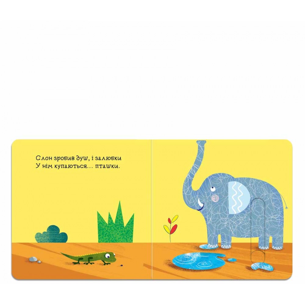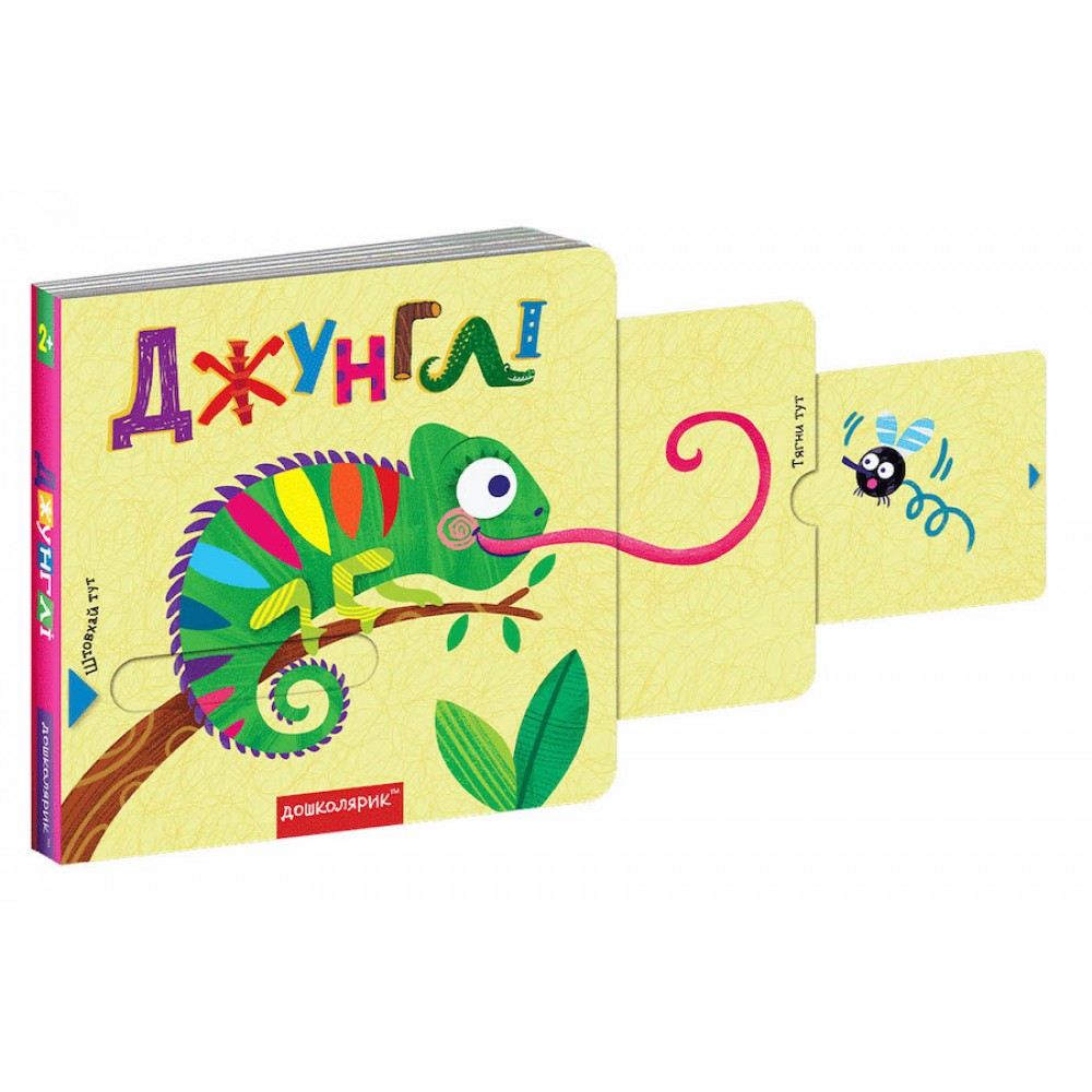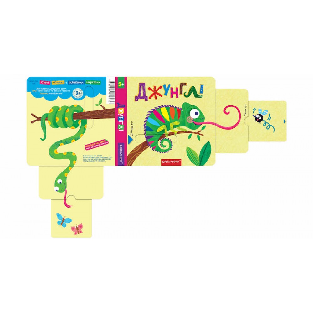 Видання ознайомить малят з різними екзотичними тваринами. У розвивальній книжці-грі «Джунглі», яка містить рухомі елементи для занять із дітлахами 2+, на кожній сторінці є подвійний висувний елемент з барвистими ілюстраціями, які доповнюють коротенькі віршики Сергія Цушка та Василя Федієнка про екзотичних тварин. Такі видання захоплять будь-якого малюка, адже в них — веселі малюнки, чудові вірші-загадки, а головне — кожна сторінка має свій секрет-відгадку. Інтерактивні елементи сприятимуть розвитку дрібної моторики, пам’яті та уваги дошкільнят.