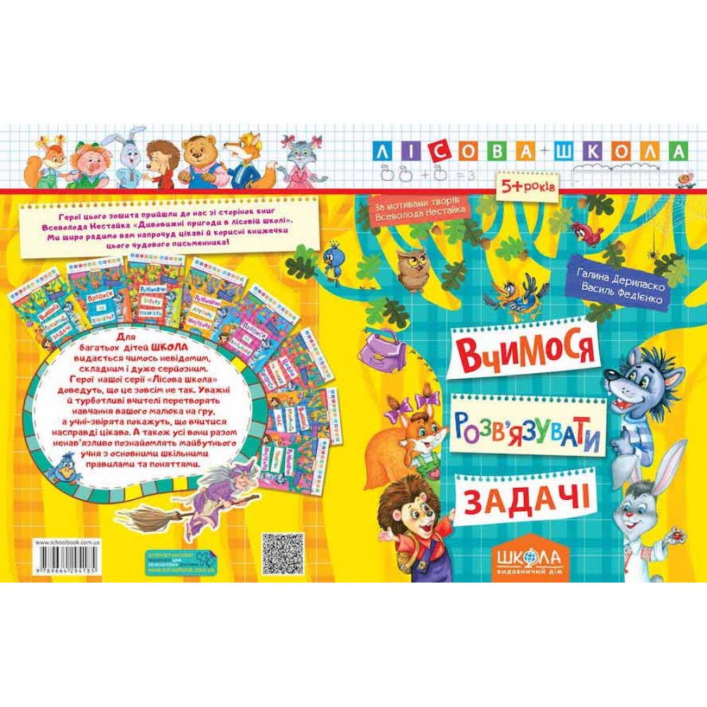 Любі малята! Герої цього зошита прийшли до нас зі сторінок книг «Дивовижні пригоди в лісовій школі» дитячого письменника Всеволода Нестайка. Ми щиро радимо вам ці напрочуд цікаві й корисні книжечки! Для багатьох дiтей ШКОЛА видається чимось невiдомим, складним i дуже серйозним. Герої нашої серiї «Лiсова школа» доведуть, що це зовсім не так. Уважнi й турботливi вчителi перетворять навчання вашого малюка на гру, а учнi-звiрята покажуть, що вчитися насправдi цiкаво. А також усi вони разом ненав’язливо познайомлять майбутнього учня з основними шкiльними правилами та поняттями.
