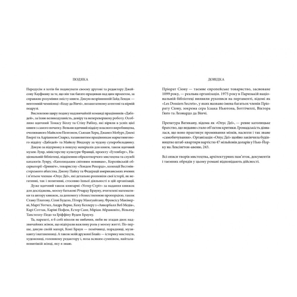 Інтрига, навколо якої розгортаються події роману, пов’язана з одвічною загадкою людства: походження, особистість, родина Ісуса Христа. Відповіді на цю загадку активно, але з ризиком для власного життя шукають герої книги — гарвардський учений Роберт Ленґдон та його несподівана супутниця, криптограф Софі.