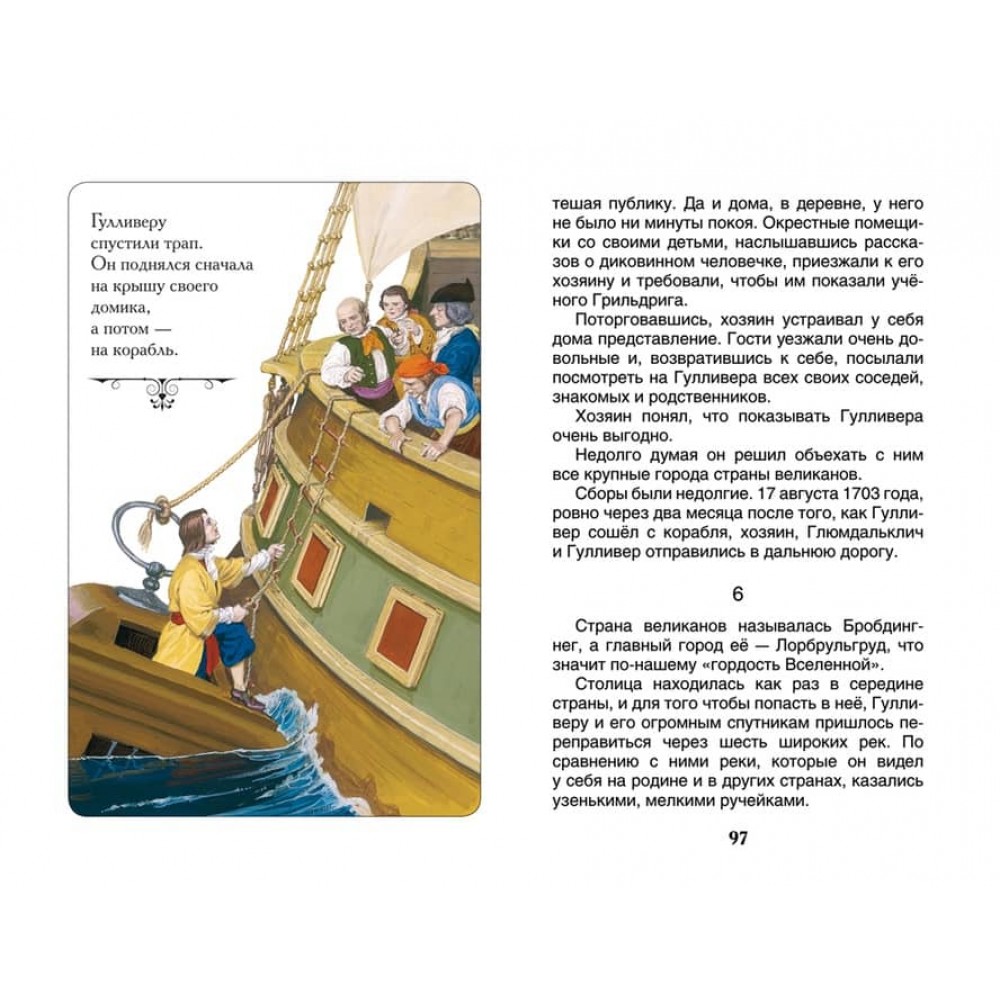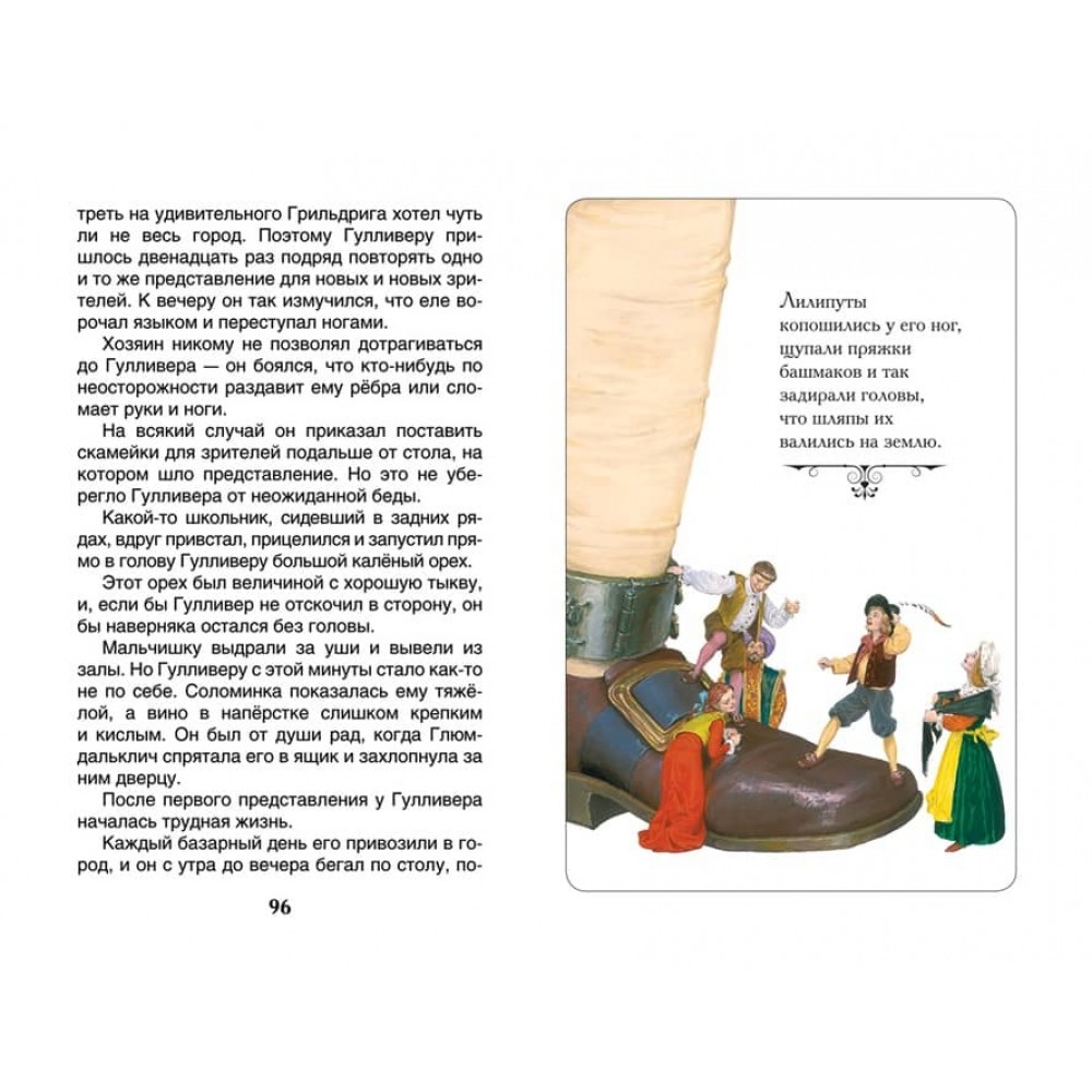 Вирушаючи в далеке плавання, корабельний лікар Гуллівер і не підозрював, якого карколомного повороту набуде його подорож. До книжки увійшов класичний переказ для дітей сатиричного роману англійського письменника Джонатана Свіфта про неймовірні пригоди Гуллівера у фантастичній країні Ліліпутії та в країні велетнів Бробдінґнеґ.