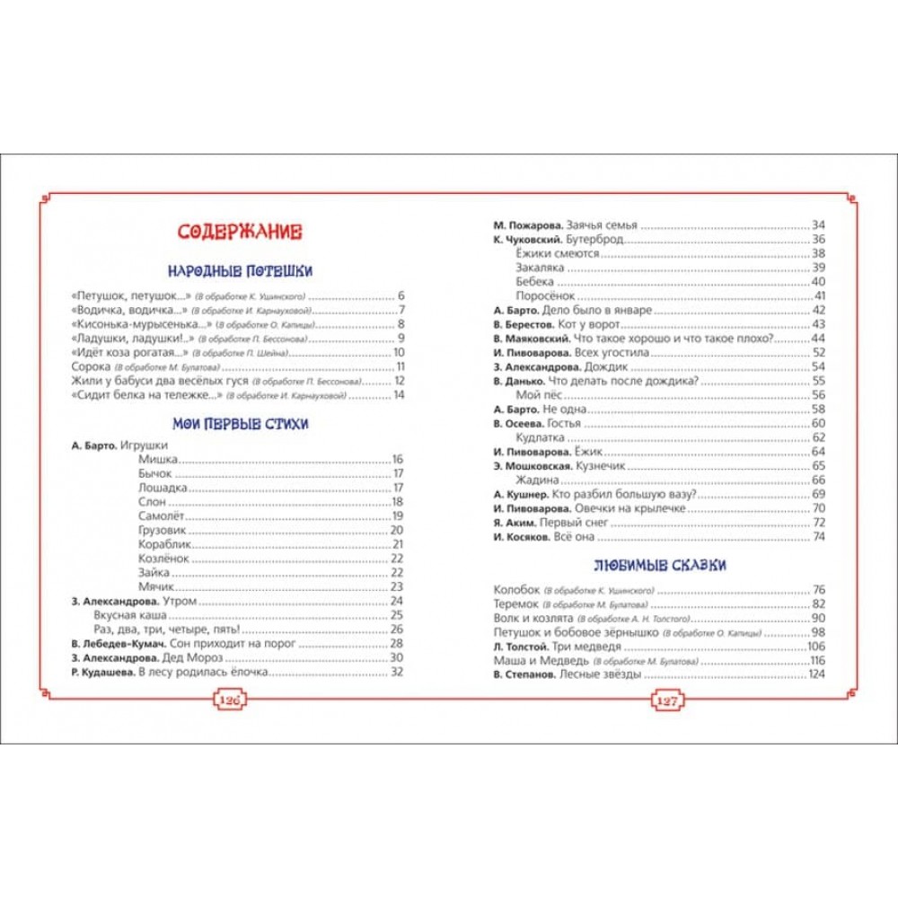 До цієї збірки увійшли найвеселіші потішки, улюблені народні казки, вірші найкращих дитячих поетів - К.Чуковського, А.Барто, З.Александрової, В.Берестова, І.Півоварової, В.Осєєвої та інших чудових авторів. Малюк із задоволенням слухатиме їх знов і знов, у грі знайомлячись із багатствами рідної мови, а одного дня сам розповість вподобаний вірш мамі чи татові. Ілюстрації відомого художника В.Коркіна
