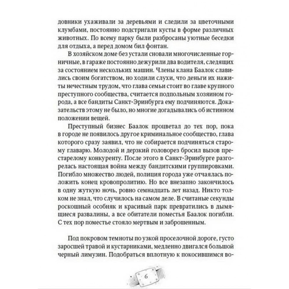 У восьмій книзі серії "Пардус" Микита дізнається про те, що пов'язує чаклунів Сентері із загадковим сімейством Баалок. І, звісно, Легостаєв опиняється в самісінькій гущавині подій, коли жахлива кара наздоганяє професора Штерна, вступає в сутичку з чудовиськом Гідеоном, яке вирішило поласувати юними красунями, та відбуває покарання, накладену завучем школи Казаковою, яка в гніві страшніша за всіх монстрів професора Штерна. Але, найголовніше, юний перевертень вступає в прямий контакт зі своїм предком Іларіоном. Невже зовсім скоро Микита стане лише оболонкою для духу злого чаклуна? Восьмий роман циклу "Пардус".