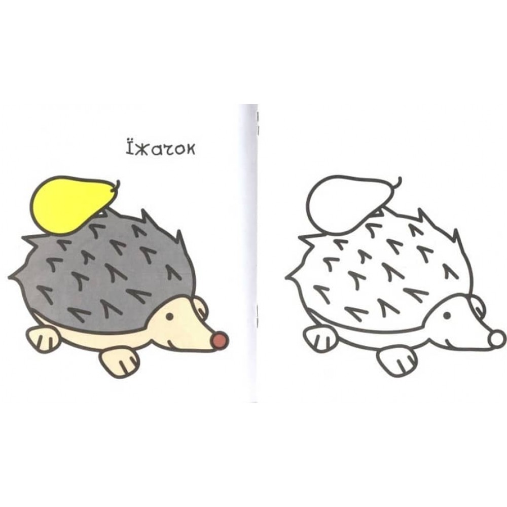 Представлена книжка розрахована на маленьких художників-початківців. Для них подано зразок, за яким треба розфарбовувати малюнки. Всі зразки підписані для того, щоб малюку було простіше орієнтуватися з предметами, які він розфарбовуватиме. А товсті лінії контуру полегшать процес малювання.