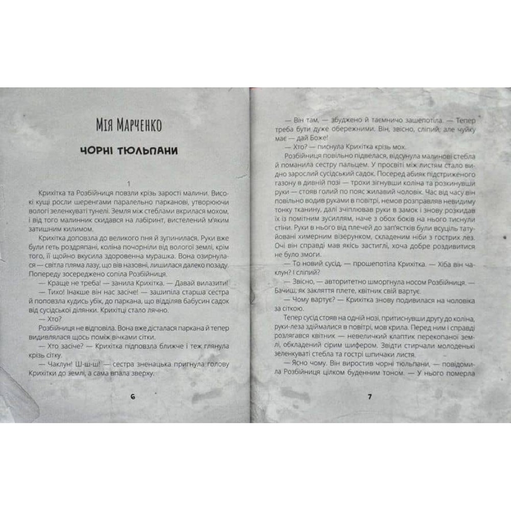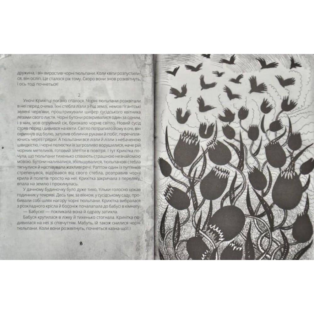 У страшній-престрашній кімнаті нз чорній-пречорній полиці лежала жахлива-прежахлива книжка... У ній вісім,страшно напружених історій про всякі містичні, часом потойбічні та геть несподівані явища, події й істот, зокрема і людських дітей. Якщо ви не з полохливих — знайомтеся з чорними тюльпанами Мії. Марченко, мешканцями закинутого горища Володимира Арєнєва, бридкими монстрами Лариси Андрієвської, кривавим Куку Іванки Кравцової, потворами Йожи Коцуна, карликовою відьмою Слави Світової, привидами Юрія Нікітінського та черв'яками-філософами Марії Артеменко.