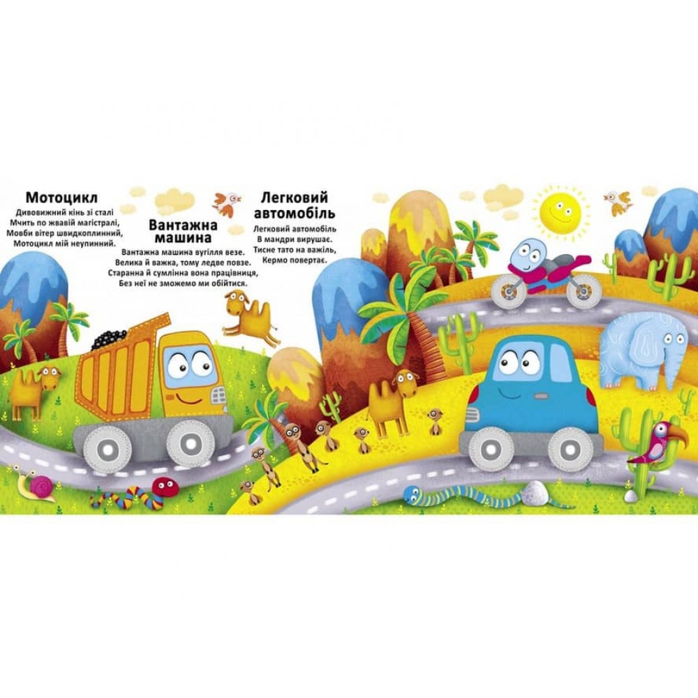 Малюку, ти тримаєш у руках дивовижну багаторазову розмальовку! З нею ти станеш справжнім чарівником. Достатньо провести мокрим пензликом по чистому аркушу, як він перетвориться на яскравий малюнок. Але на цьому дива не закінчуються — дай зображенню повністю висохнути, і воно щезне! Ти можеш повторювати цей фокус знову й знову — наша розмальовка не дасть тобі нудьгувати! Шановні батьки! Не біда, якщо дитині ще важко вправлятися з олівцями або фарбами, для малювання в цій книжці знадобляться тільки вода та пензлик. А завдяки веселим віршикам ваш малюк познайомиться з різними видами транспорту.
