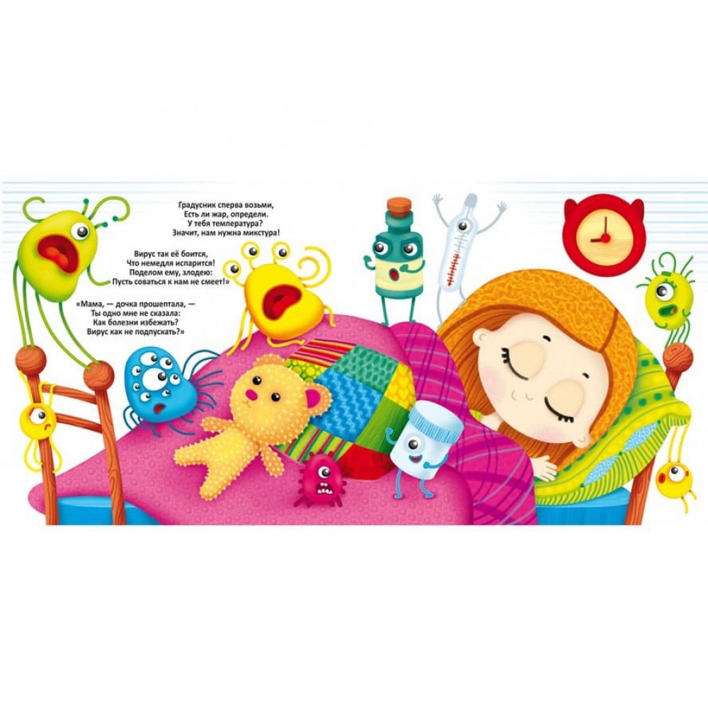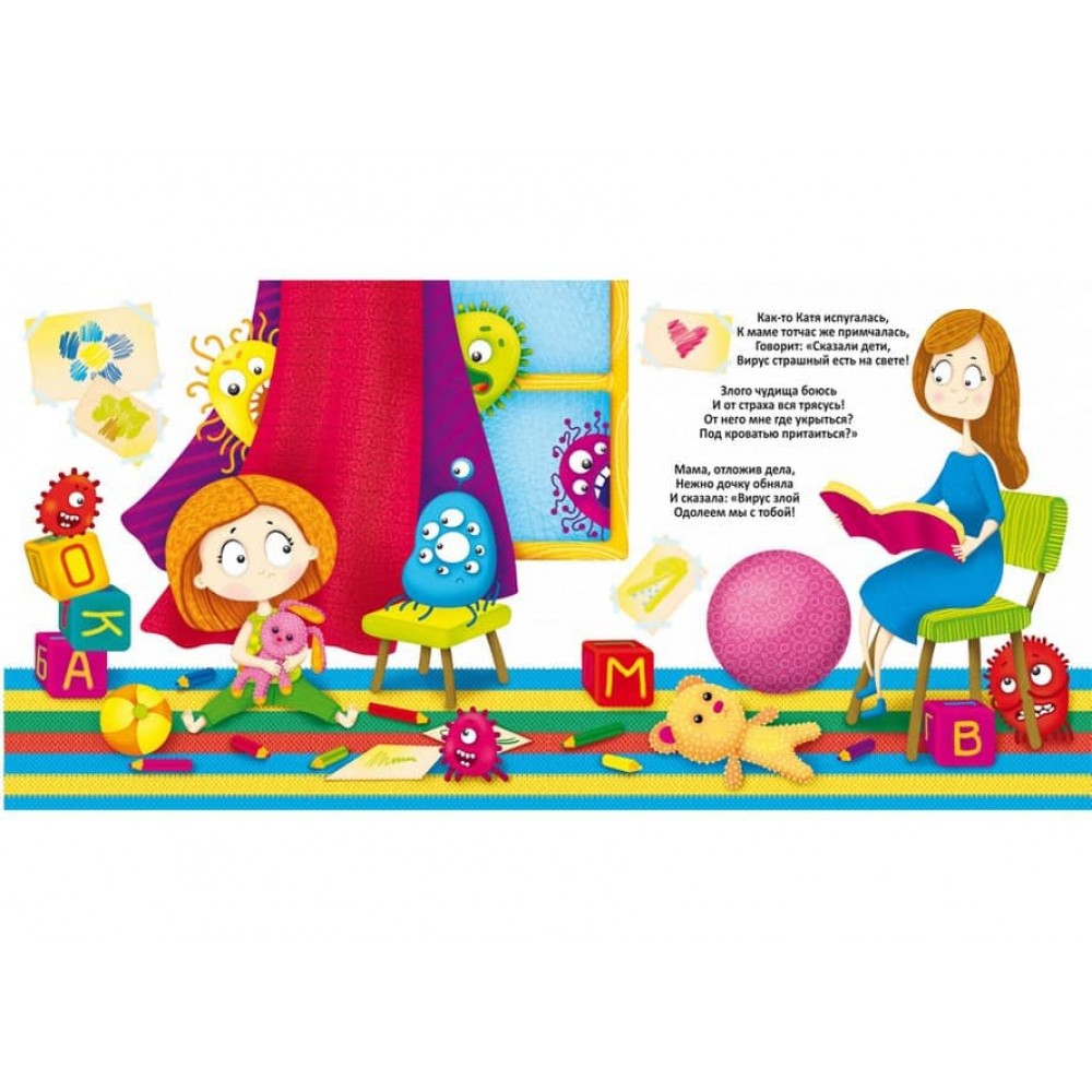 Малюк, ти тримаєш у руках дивовижну багаторазову розмальовку! З нею ти станеш справжнім чарівником! Достатньо провести мокрим пензликом по чистому аркушу, як він перетвориться на яскравий малюнок. Однак на цьому чудеса не закінчуються - дай зображенню повністю висохнути, і воно зникне! Ти можеш повторювати цей фокус знову і знову - з нашою розмальовкою нудьгувати не доведеться! Шановні батьки! Не біда, якщо дитині ще складно вправлятися з олівцями або фарбами, для малювання в цій книжці знадобляться тільки вода і пензлик. А завдяки веселим віршикам ваш малюк дізнається все про те, як захиститися від вірусів.
