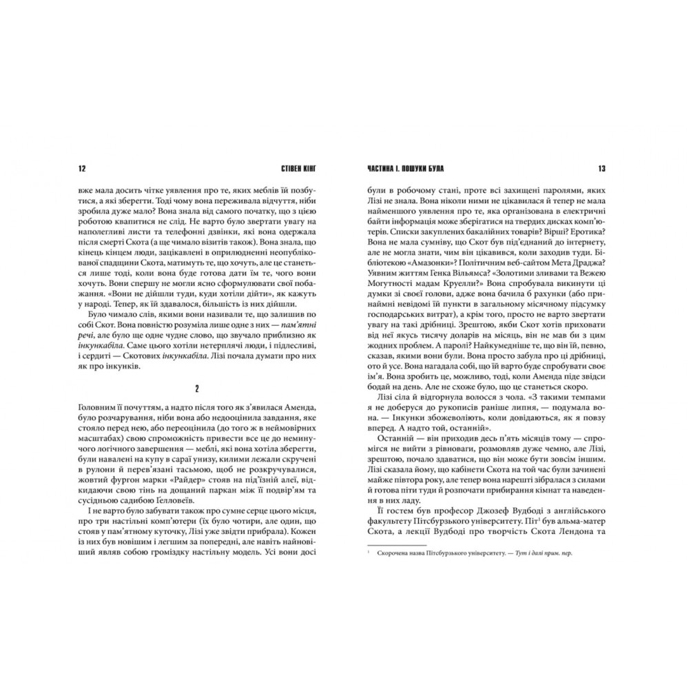 Покійний чоловік Лізі, Скот Лендон, був відомим письменником. Іноді здавалося, що він продав душу дияволу і саме за це отримав свій надзвичайний талант. Після смерті чоловіка жінці докучають літературознавці, які будь-що прагнуть заволодіти творчими доробками Скота. Та коли жінка береться за впорядкування його творів, то розуміє, що в житті Скота було дещо жахливе, моторошне. Щось таке, із чого він черпав натхнення, за яке потім заплатив своїм життям. Ким насправді був Скот? Лізі починає блукати в лабіринті секретів минулого. Ще трохи, і знайти вихід буде неможливо…