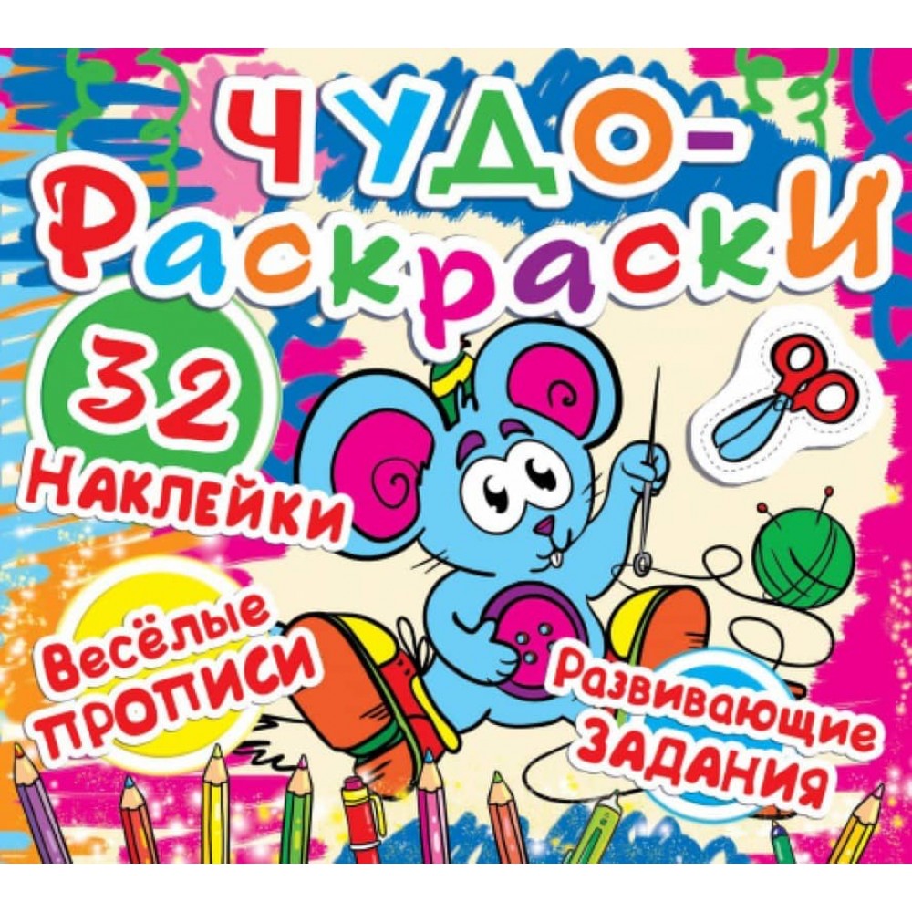 Чудо-розмальовки. 32 наліпки. Веселі прописи. Розвиваючі завдання. Мишка (російською мовою)