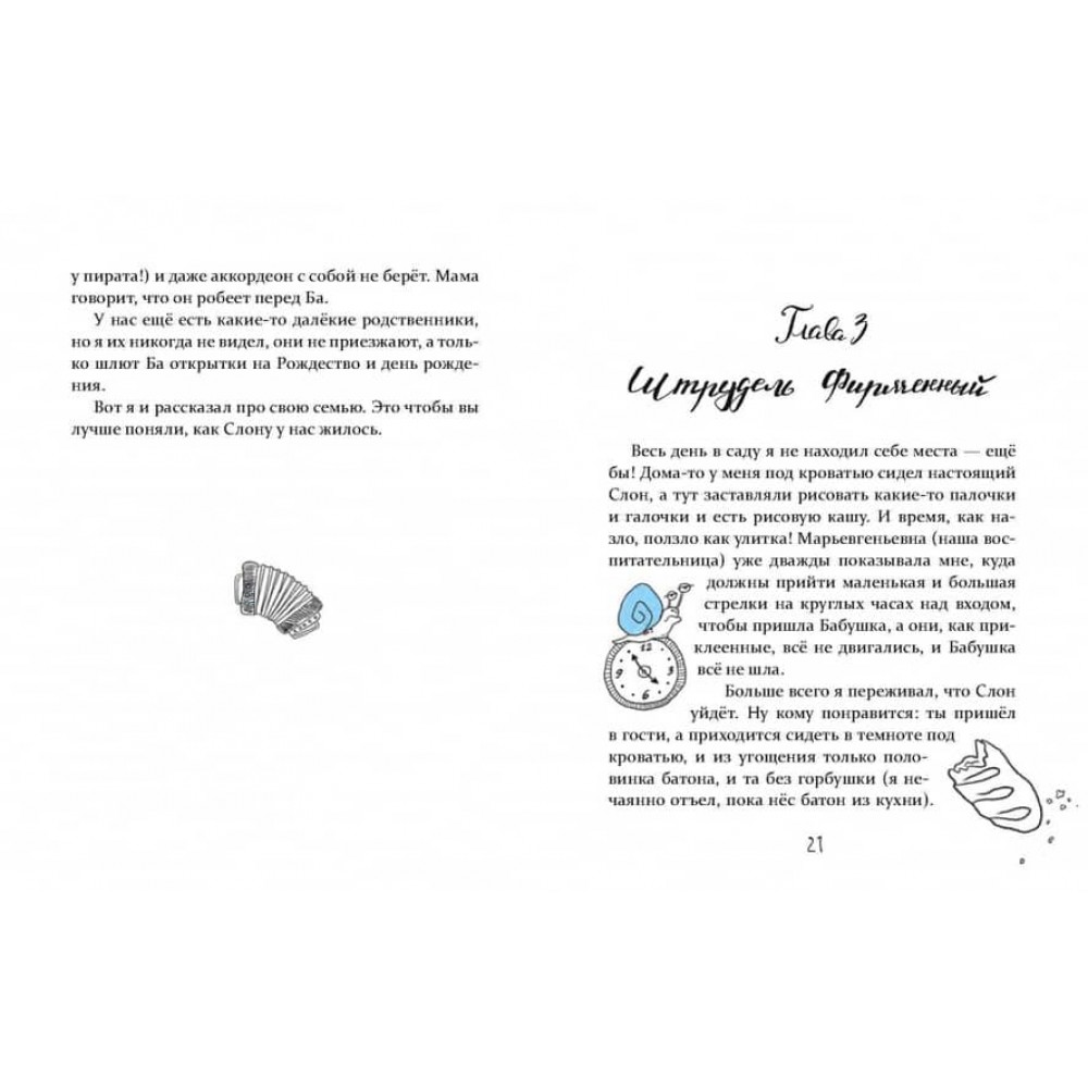Похмурого дня хлопчик Саня знаходить під ліжком Слона. Слон цілеспрямований, має рідкісне забарвлення і харчується здобою. Разом їм належить дізнатися, чому трапляється форс-мажор, навіщо для любові зуби і що кладуть у похідну валізу. Загалом, вкрай важливі речі. А з ними зрозуміти, як багато значать Турбота і Сім'я.