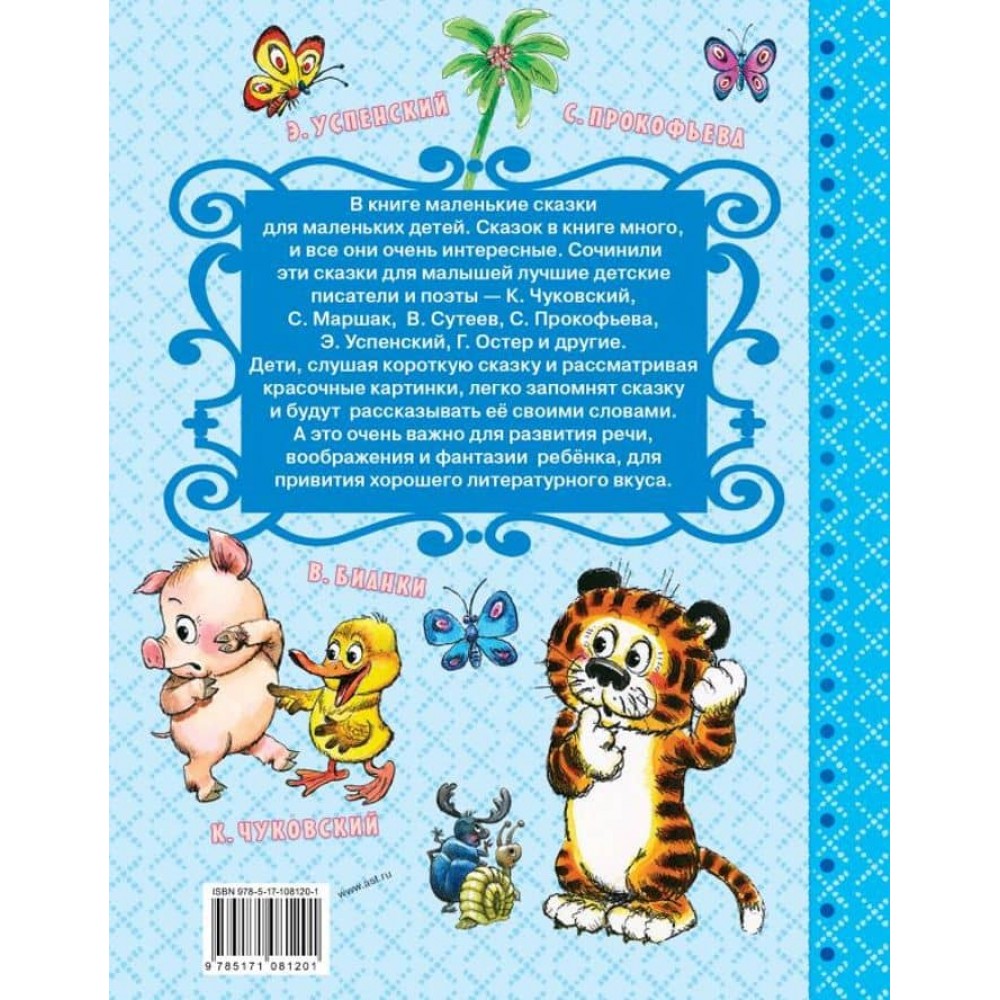 Під однією обкладинкою збірки "Казки-хвилинки" - сімнадцять популярних маленьких творів легендарних вітчизняних дитячих письменників. Серед них - "Курча" Корнія Чуковського, " хто колечко знайде?"і» тиха казка" Самуїла Маршака, "як порося говорити навчився" л. Пантелєєва, "Хоробре каченя" Бориса Житкова, "Курча і каченя «і» Кораблик" Володимира Сутеева, "добра господиня" Валентини Осеевой «" про розумних звіряток "Василя Лебедєва-Кумача," коли можна плакати?"Софії прокоф'євої,» Шпаківня для метелика «і» кулька і Бобренок «Едуарда Успенського,» Босолапки на шкіряному ходу «Михайла Пляцковського,» хто кого добріший «Геннадія Циферова,» Середина сосиски «і» добре захована котлета" Григорія Остера.