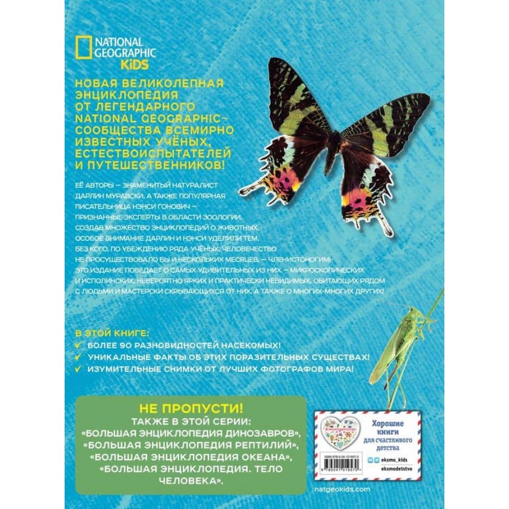 Нова чудова енциклопедія від легендарного товариства National Geographic! Вражаючі факти про комах від знаменитого натураліста Дарлін Муравскі та відомої письменниці Ненсі Гонович - авторів безлічі науково-популярних книг! Дивовижні знімки від найкращих фотографів світу! Унікальні відомості про рідкісні види членистоногих, які можна знайти тільки в цій енциклопедії!
